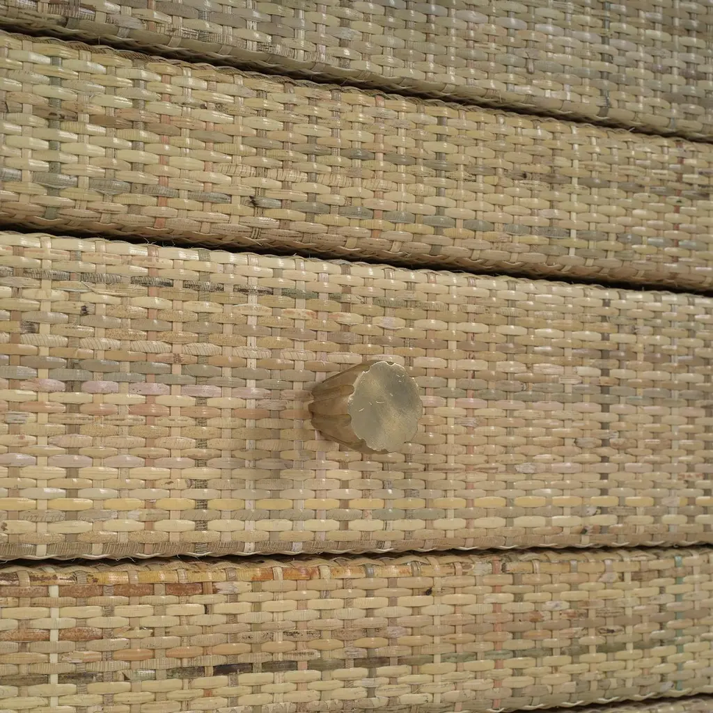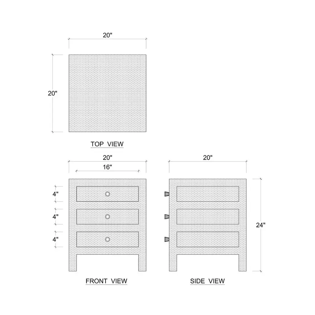 Wrapped in natural rattan, this stunning table combines modern design with coastal charm. It features three drawers for all your storage and bedside essentials. The natural rattan finish adds a touch of elegance and warmth to any room while helping to keep your room clutter-free with ample storage space. Dimensions: 20" W x 20" D x 24" H