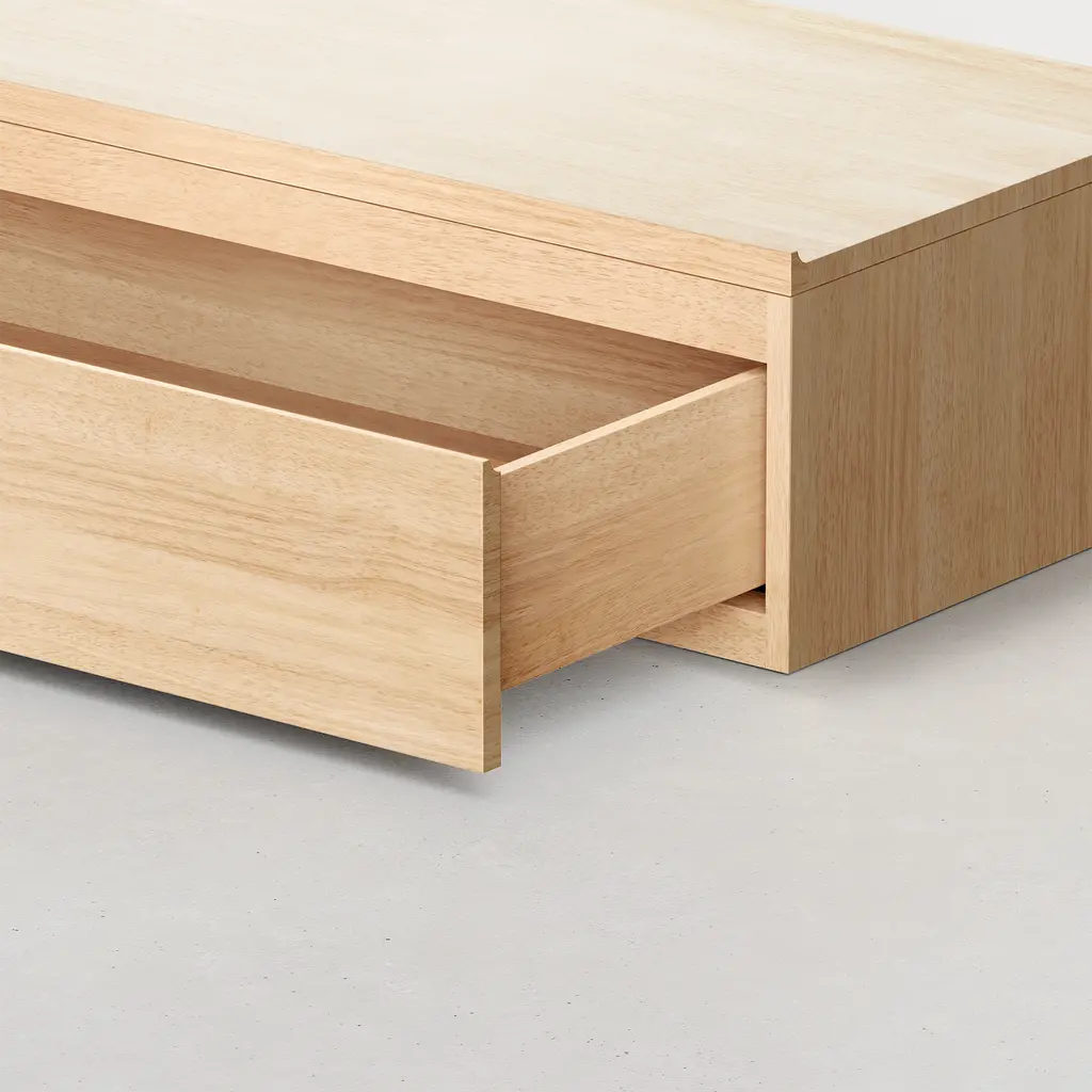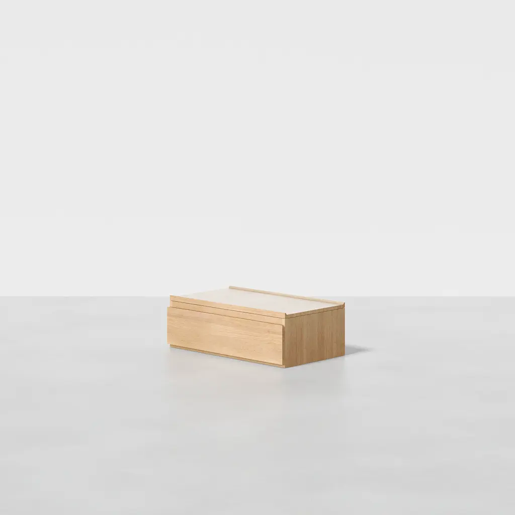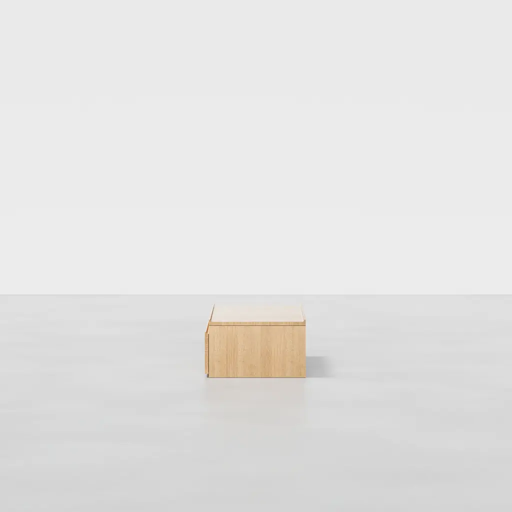 The Nest Nightstand Low utilizes the Nest Base Drawer to serve as a storage-focused, low-profile, minimalist bedside companion. Soft-close design, 100% upcycled wood, and thoughtful detailing make for a lifetime of modern functionality as a nightstand. With the same clean lines and subtle curves, it pairs perfectly with the Essential Bed for a minimal, functional aesthetic.