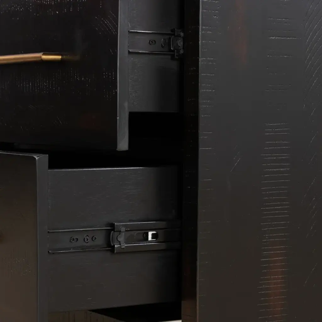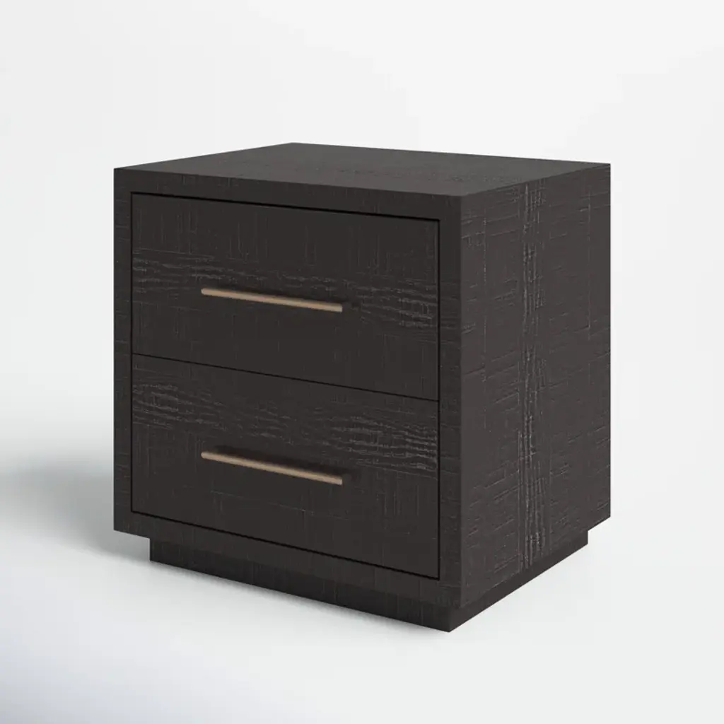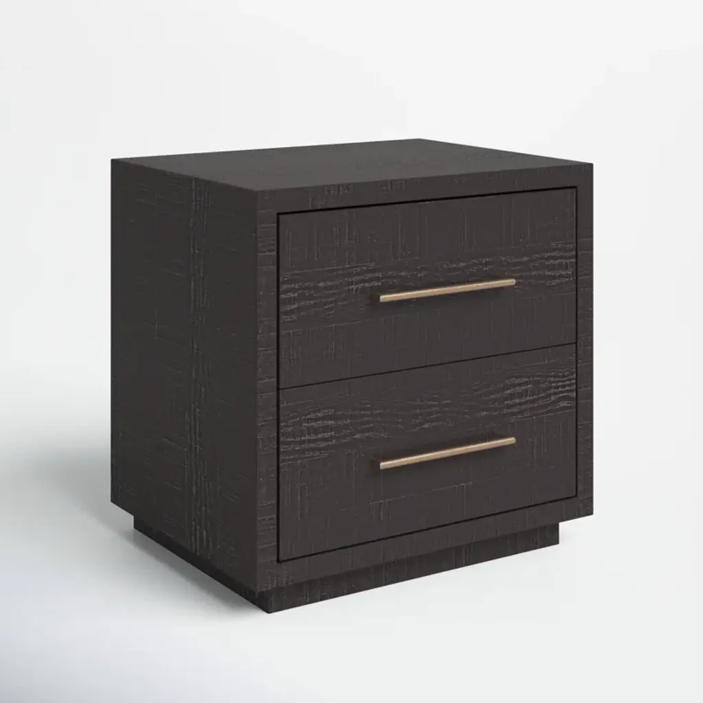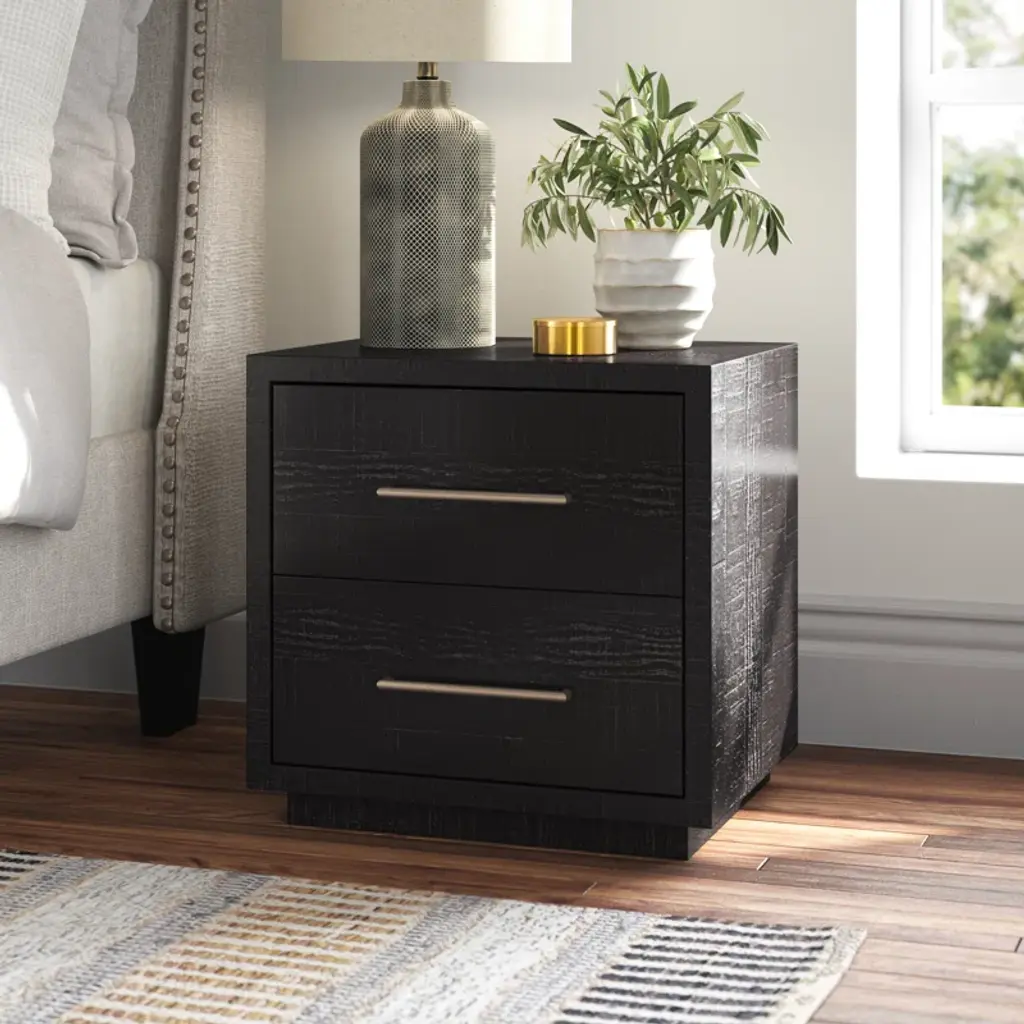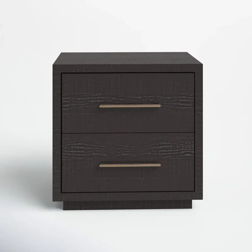 This nightstand takes inspiration from classic mid-century styles, but gives it a super sleek update. It's made from engineered wood, and has a clean-lined, squared body set on a block base for a recognizably retro silhouette. Two drawers on roller glides with slim bar pulls both complement the look, and give you some storage for before bed essentials. And since this nightstand measures 21.75'' high, it's a great height for most beds. No assembly is required.