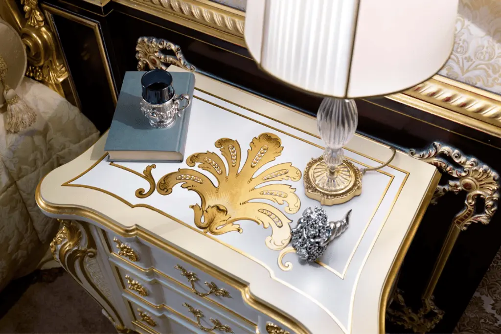 The Classic Italian Ivory Night Table, Persia Collection by Carlo Asnaghi is a beautiful and functional piece of furniture that will add elegance and style to any bedroom.This night table is crafted from high-quality materials, including wood and metal, and it is designed to be both durable and practical.The table has a rectangular shape with clean lines and a Classic design that will complement any modern bedroom decor. It is available in a range of finishes, including black, white, and dark brown, so you can choose the one that best matches your existing bedroom furniture.The Classic Italian Ivory Night Table features a single drawer that provides ample storage space for your bedside essentials, such as books, reading glasses, and a phone charger. The drawer has a soft-close mechanism and is lined with velvet to protect your belongings.The Classic Italian Ivory Night Table by Carlo Asnaghi also includes a built-in wireless charging pad, allowing you to charge your phone or other devices without the need for cords or cables. The charging pad is discreetly integrated into the table’s surface, so you can keep your phone nearby while it charges.Dimension; 70 x 45 x 70hShop All Carlo Asnaghi Italian Furniture by Catalog
