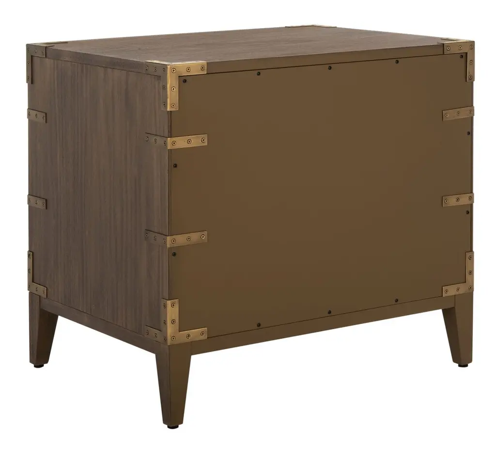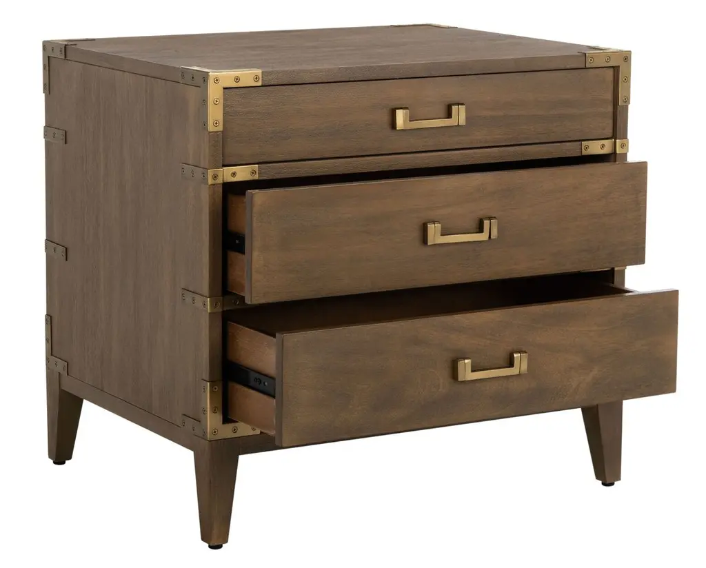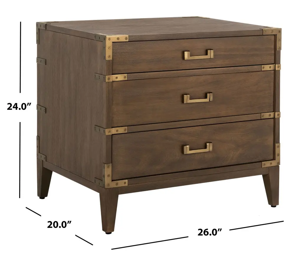 This stunning Nirel Nightstand is a perfect pairing of industrial sass and couture class. Inspired by campaign style steamer trunks, Nirel’s antiqued hardware and nailhead details give its mahogany frame a fashion-forward edge, while three drawers provide ample bedside storage.