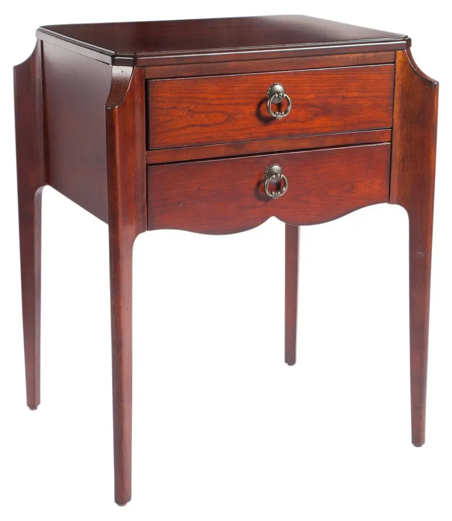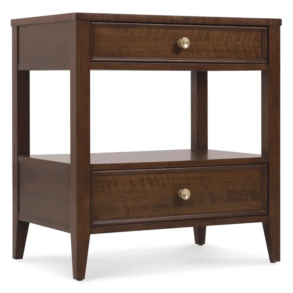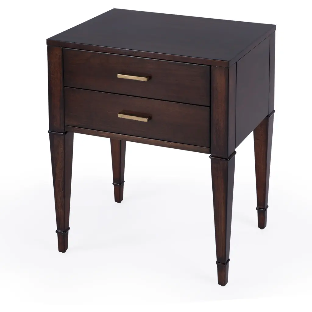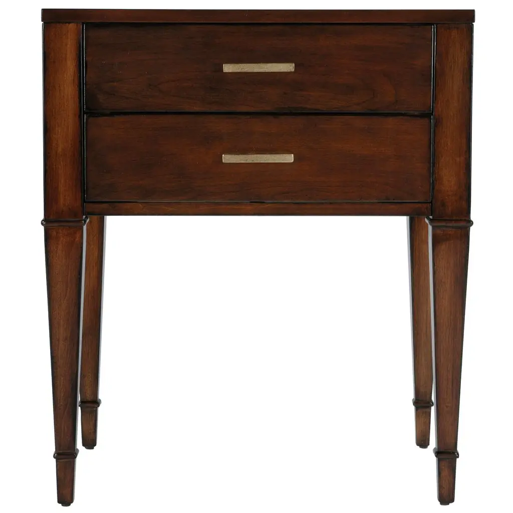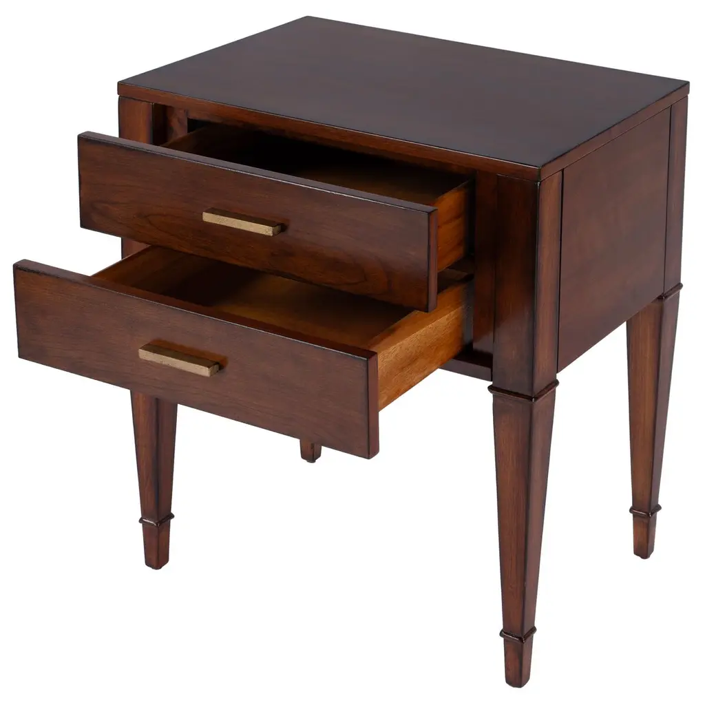 With gorgeous square tapered legs and elegant gold detailing, this mid-century style design brings a modern flair to any space. Each piece features unique wood grain characteristics, ensuring no two pieces are alike, offering a custom-made feel for your home. Equipped with 2 spacious drawers, it provides ample storage for all your essentials.