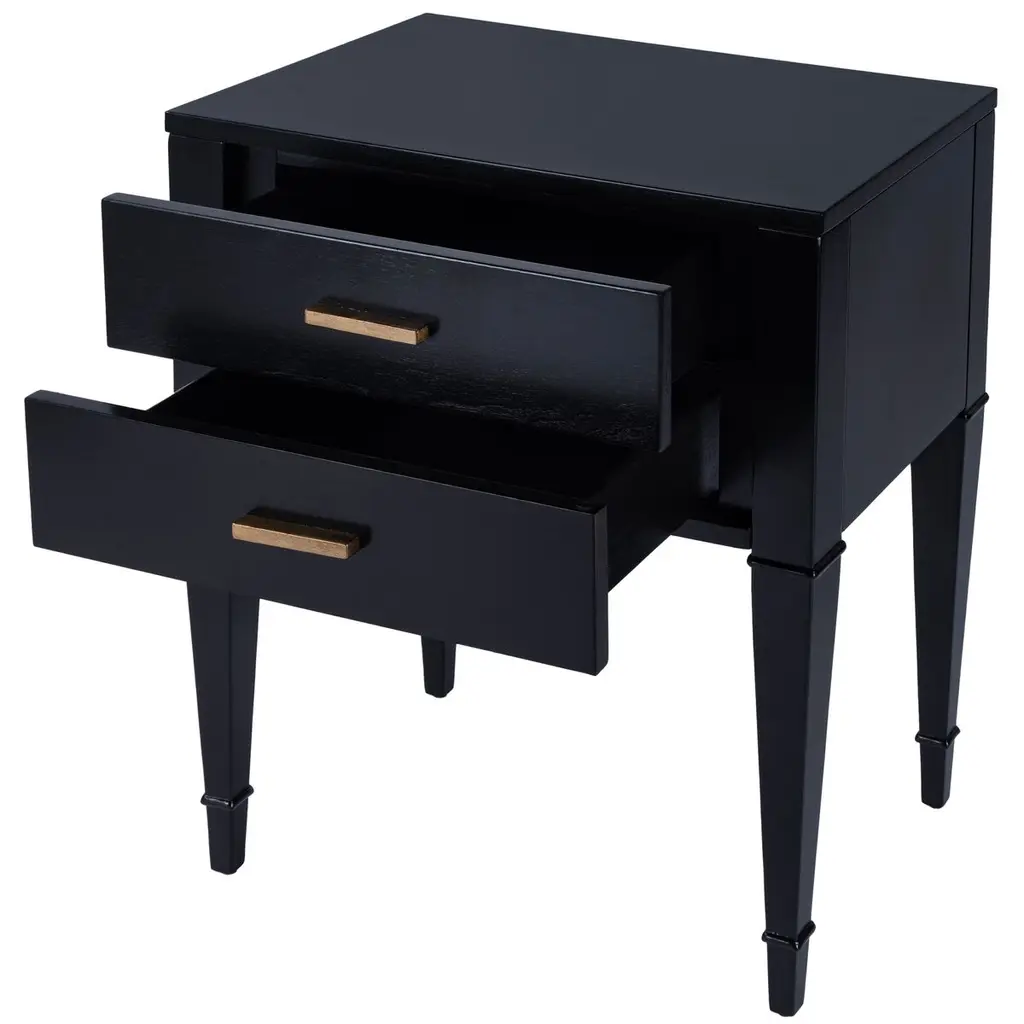 With gorgeous square tapered legs and elegant gold detailing, this mid-century style design brings a modern flair to any space. Each piece features unique wood grain characteristics, ensuring no two pieces are alike, offering a custom-made feel for your home. Equipped with 2 spacious drawers, it provides ample storage for all your essentials.