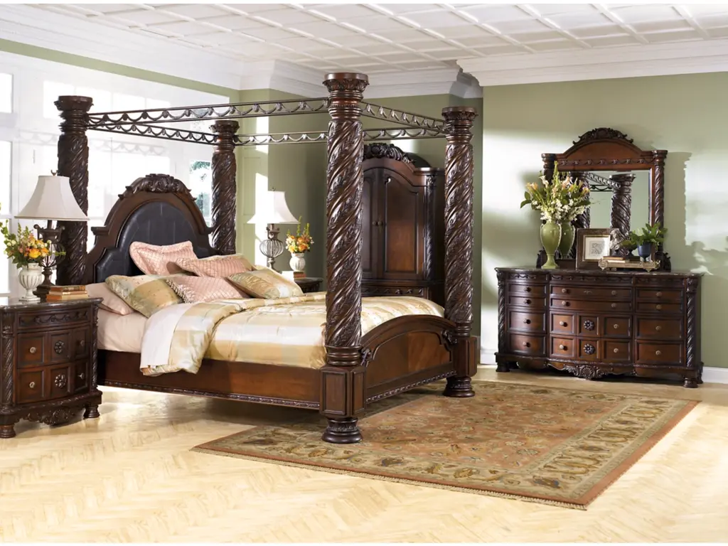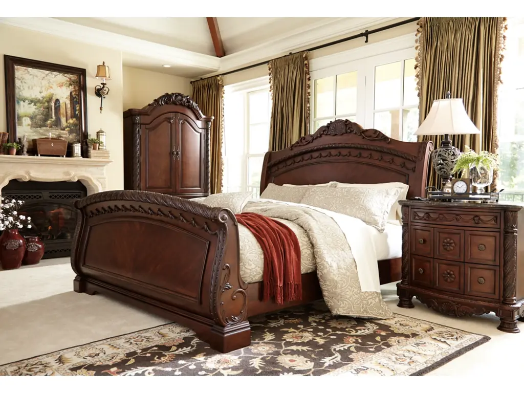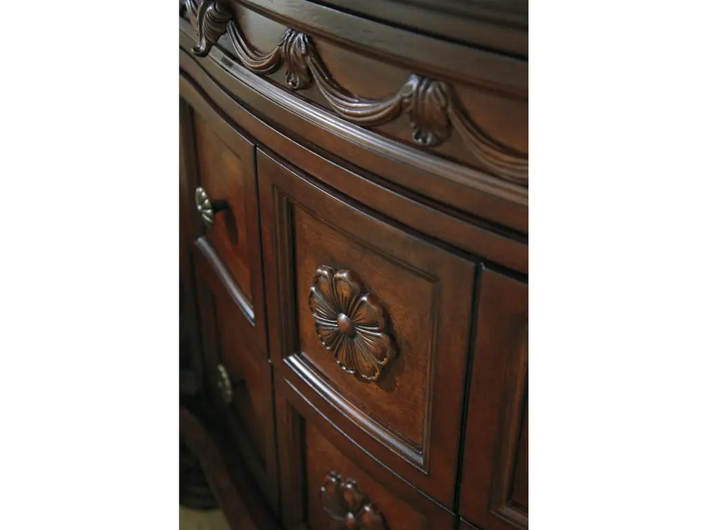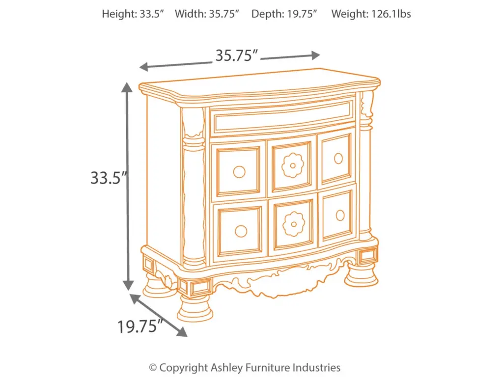 Inspired by the grandeur and grace of Old World style, the North Shore nightstand is nothing short of stunning. A choice blend of materials is accented by detailed ornamental appliques. The diamond-patterned marble veneer tops off the opulence. Three smooth-gliding drawers serve your bedside storage needs exceptionally well.