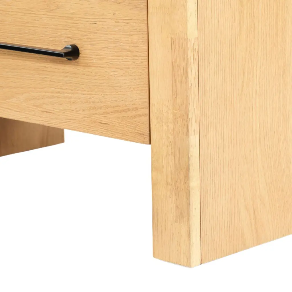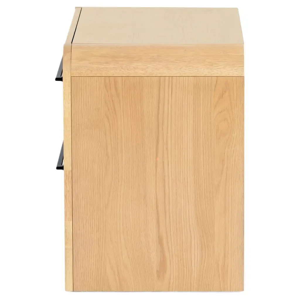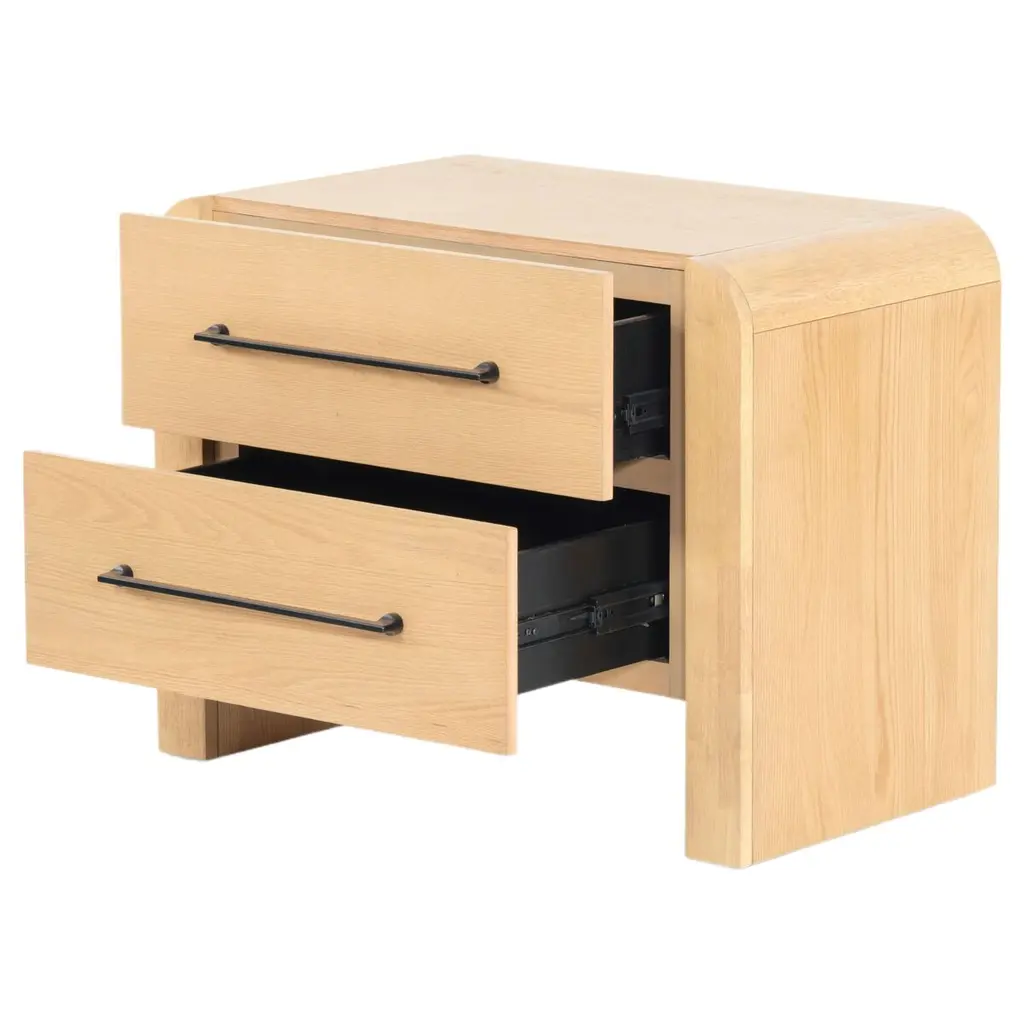 Experience the unique combination of style and utility with the Novaneth Wood 2 Drawer Nightstand. Elegantly crafted with solid rubber wood and enhanced with an oak veneer, this nightstand injects a touch of rustic charm into any bedroom. A sturdy zinc frame adds an industrial edge for a well-balanced blend of classic and modern design elements. This versatile piece offers ample storage in its two smooth-sliding drawers to conveniently store all your bedside essentials. Whether you're setting down a glass of water or displaying a lamp or cherished keepsakes, the Novaneth Wood 2 Drawer Nightstand makes an excellent partner for your bed. This nightstand is not only a functional storage solution but also a beautiful furniture piece that makes a statement in your bedroom.