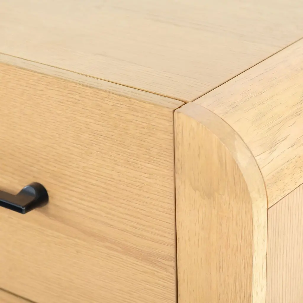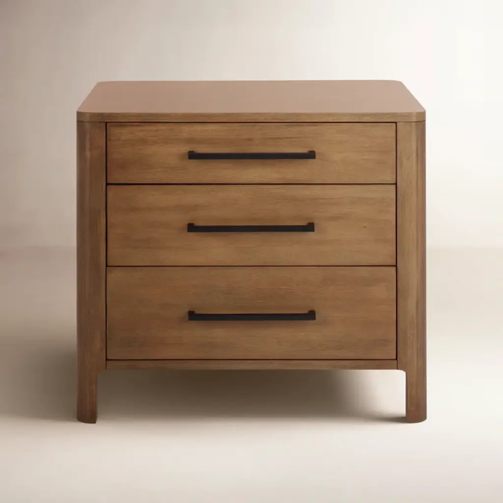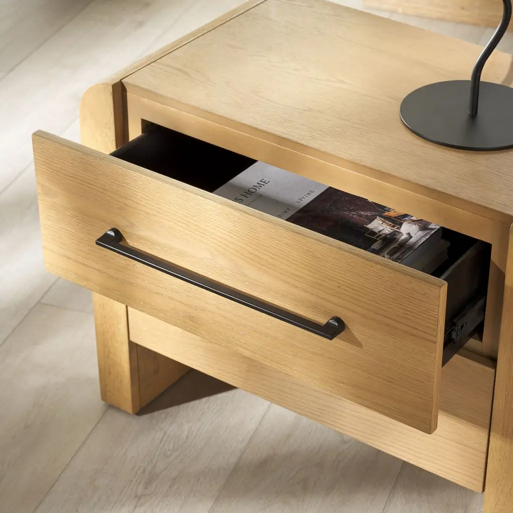 Experience the unique combination of style and utility with the Novaneth Wood 2 Drawer Nightstand. Elegantly crafted with solid rubber wood and enhanced with an oak veneer, this nightstand injects a touch of rustic charm into any bedroom. A sturdy zinc frame adds an industrial edge for a well-balanced blend of classic and modern design elements. This versatile piece offers ample storage in its two smooth-sliding drawers to conveniently store all your bedside essentials. Whether you're setting down a glass of water or displaying a lamp or cherished keepsakes, the Novaneth Wood 2 Drawer Nightstand makes an excellent partner for your bed. This nightstand is not only a functional storage solution but also a beautiful furniture piece that makes a statement in your bedroom.