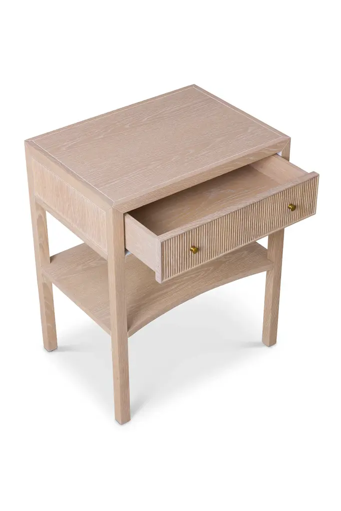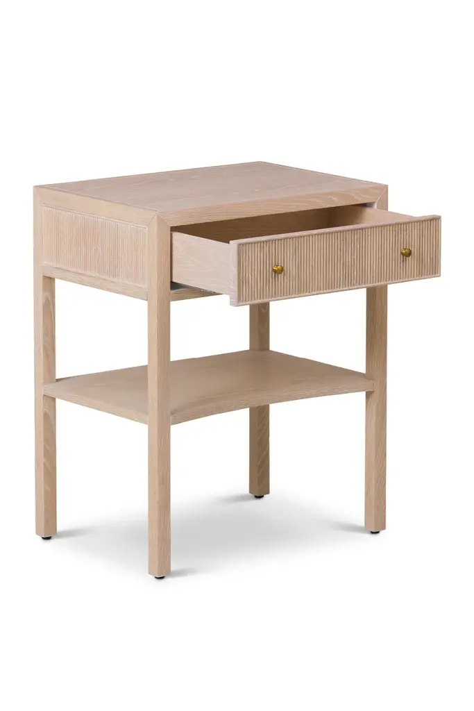 A seamless blend of natural beauty and luxury, the Toronto Bedside Table features a natural white oak finish complemented by brass handles. This clean, minimalistic design is both timeless and versatile, making it ideal for creating a calming ambience in residential and hospitality spaces.