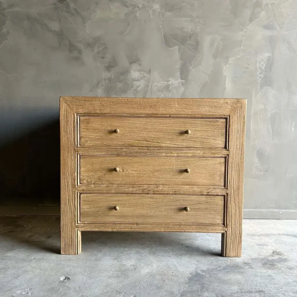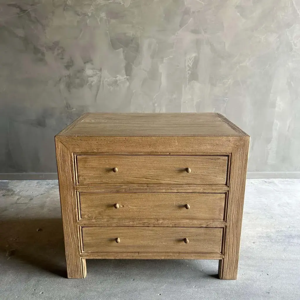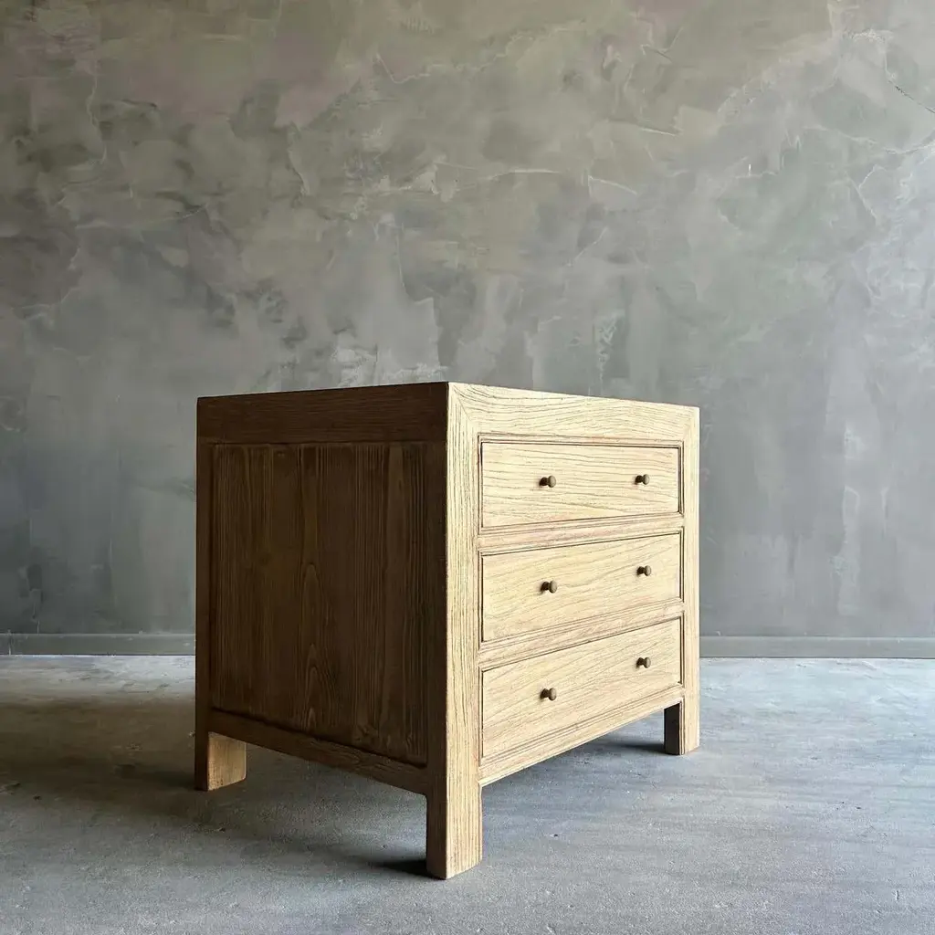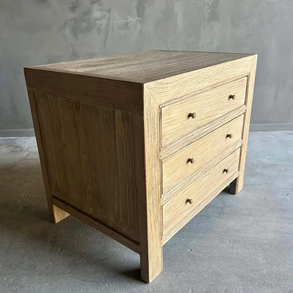 Ollie 3 Drawers Reclaimed Elm Wood Nightstand In Natural Finish
