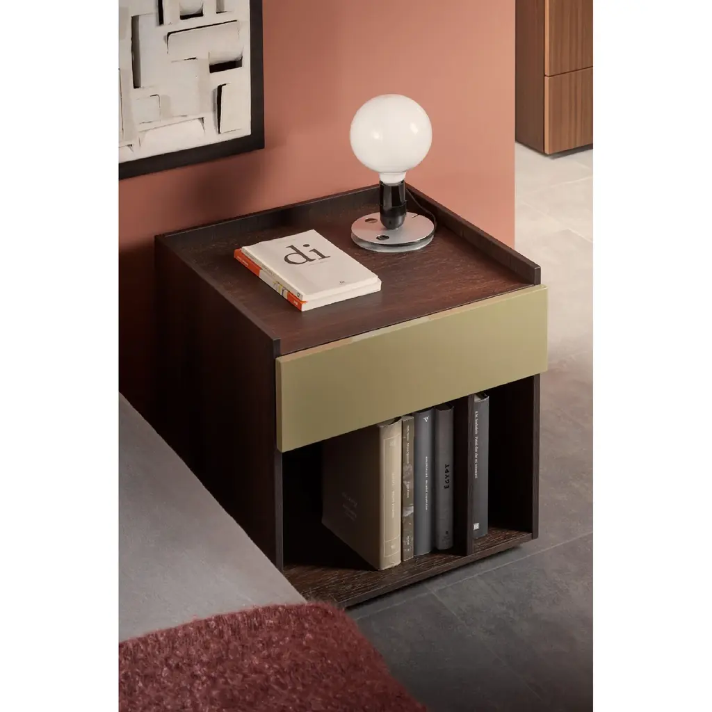 The Open Compartment Oak Nightstand by Lema Tip is designed by Daniel Debiasi and Federico Sandri, Tip is a collection designed for bedroom storage that features a chest of drawers, a tallboy, and a side table, with the later available in two different versions. A contemporary, simple collection that experiments with open and closed spaces, Tip combines the heat-treated oak of the structure with drawer fronts available in matte or glossy lacquer, Canaletto walnut, or the sophisticated Argilla, which is silky to the touch and pleasant to look at.