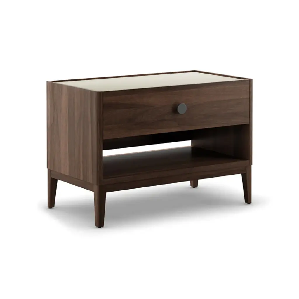 Opera is a walnut bedside table with lacquered wood drawer, available with or without feet.To complete the Opera program, as well as the best best sellers by Tonin Casa, there is Opera night. This bedroom set consisting of a bedside table, dresser and tallboy, perfectly matches the elegance of a refined sleeping area.