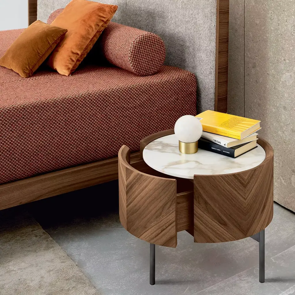 Opera Nightstand In Walnut Canaletto With Calacatta Ceramic Top