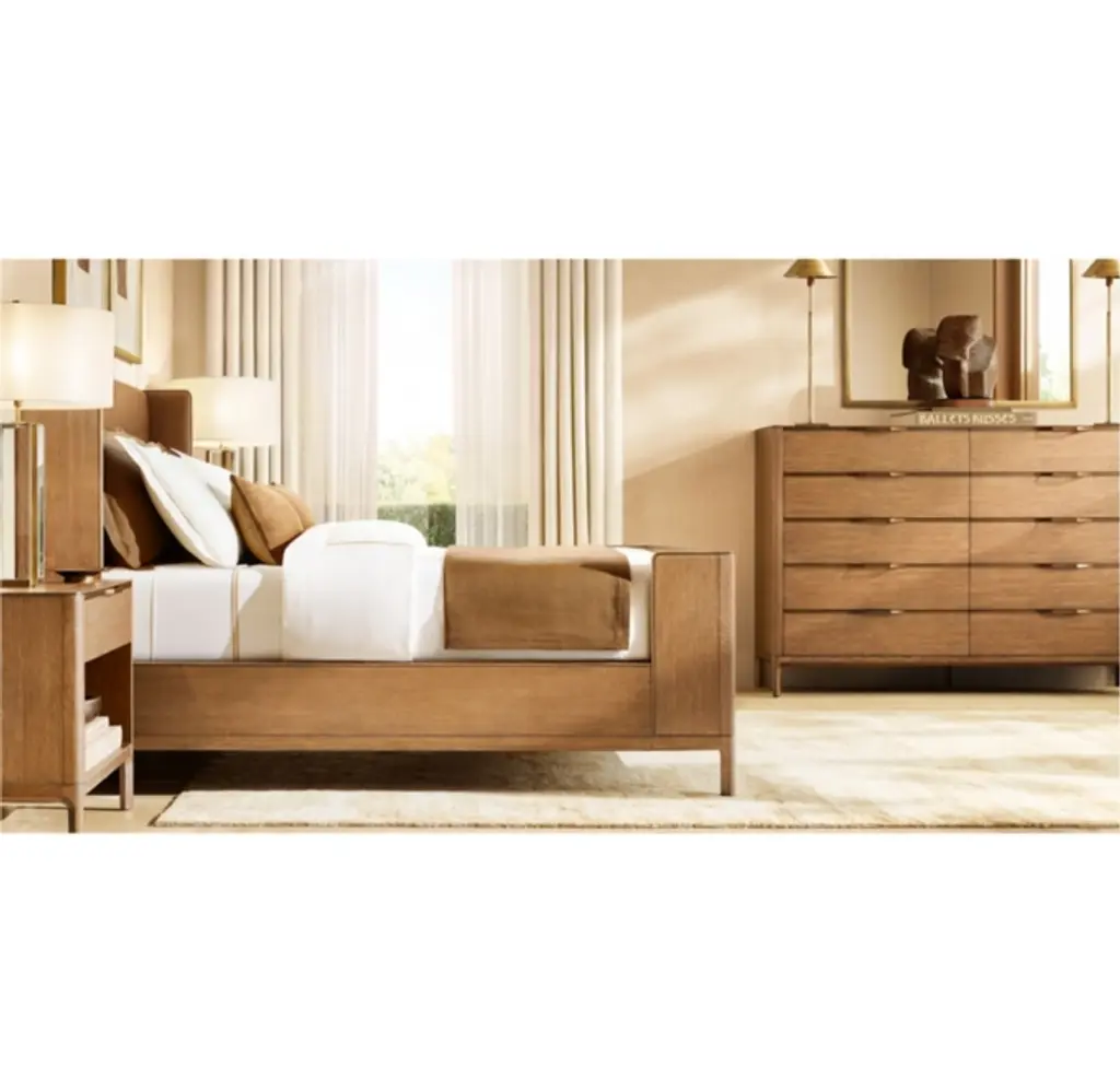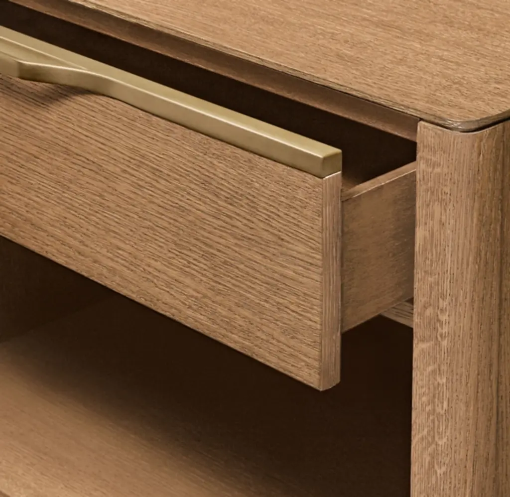 Exquisite workmanship and refined restraint characterize our collection by the Van Thiels. Spare and sculptural, each geometric form is simplified to its functional essence – a harmonious interplay of straight lines and gently rounded corners. Slender, sinuous metal hardware provides an elegant counterpoint to the warmth of richly grained American oak veneers. SHOP THE ENTIRE COLLECTION