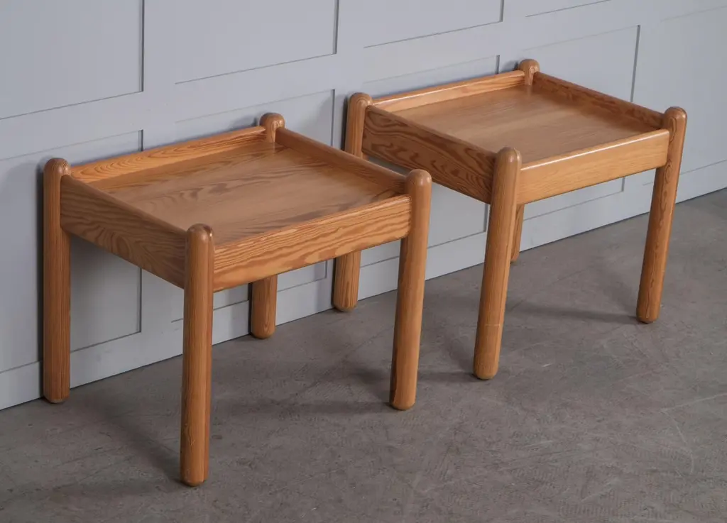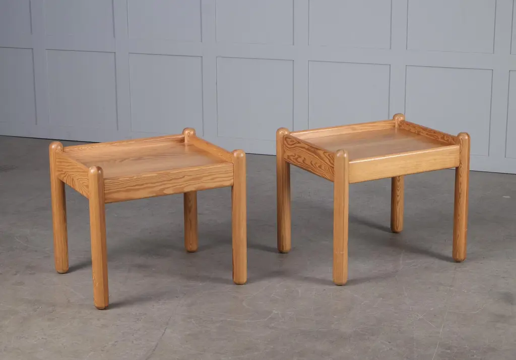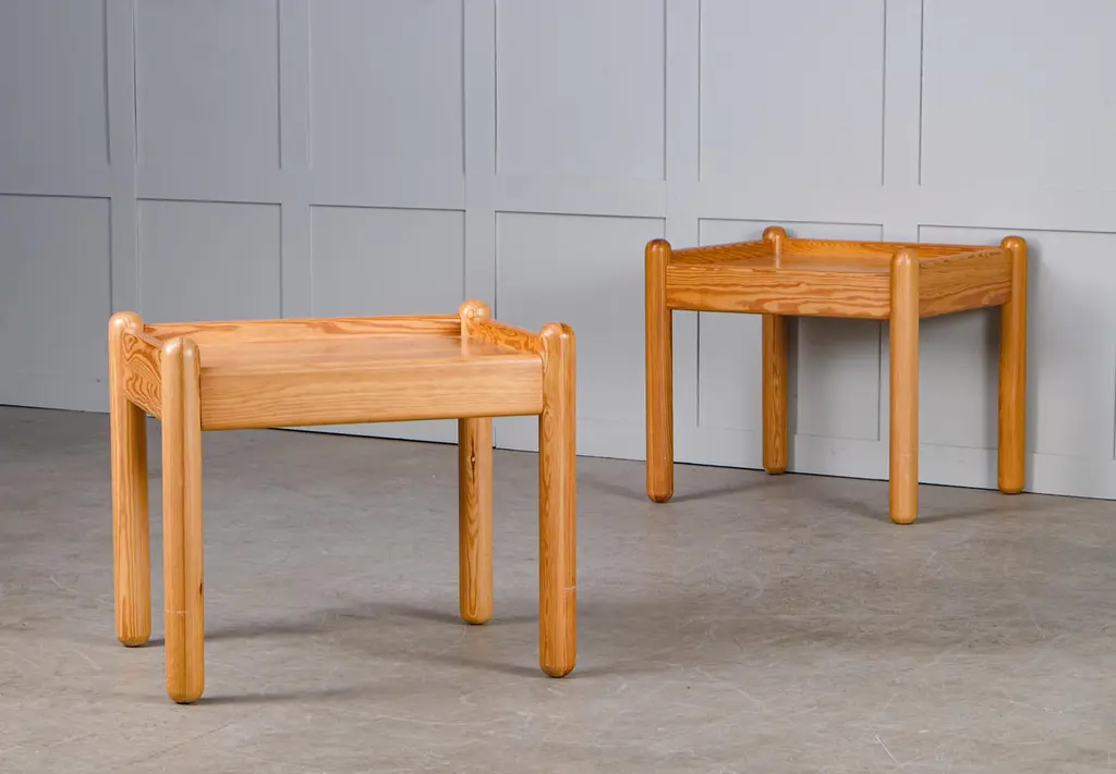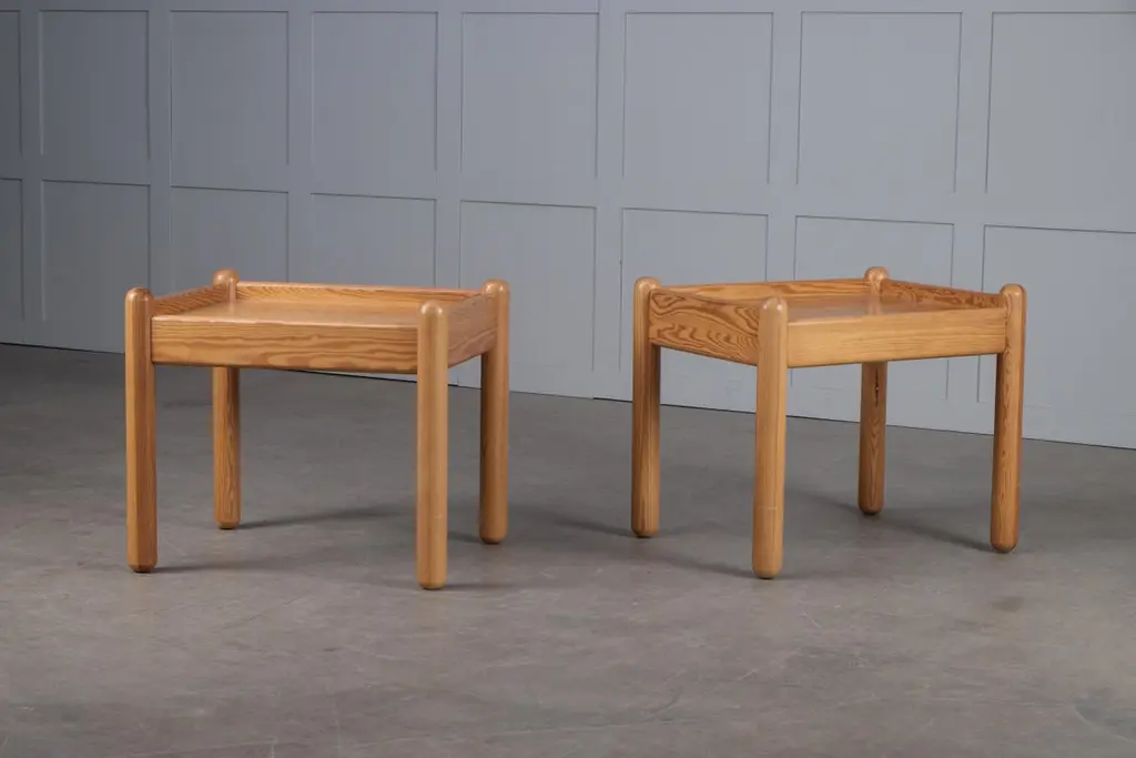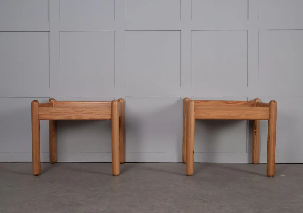 Pair of bedside tables in pine, produced in Denmark, 1970s.Good original condition with small signs of usage.4 tables available, listed price is for a pair.