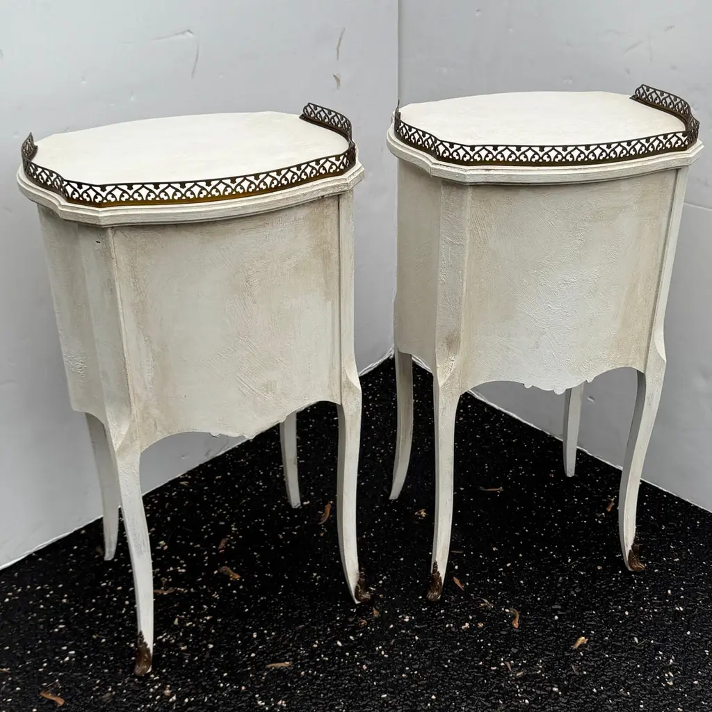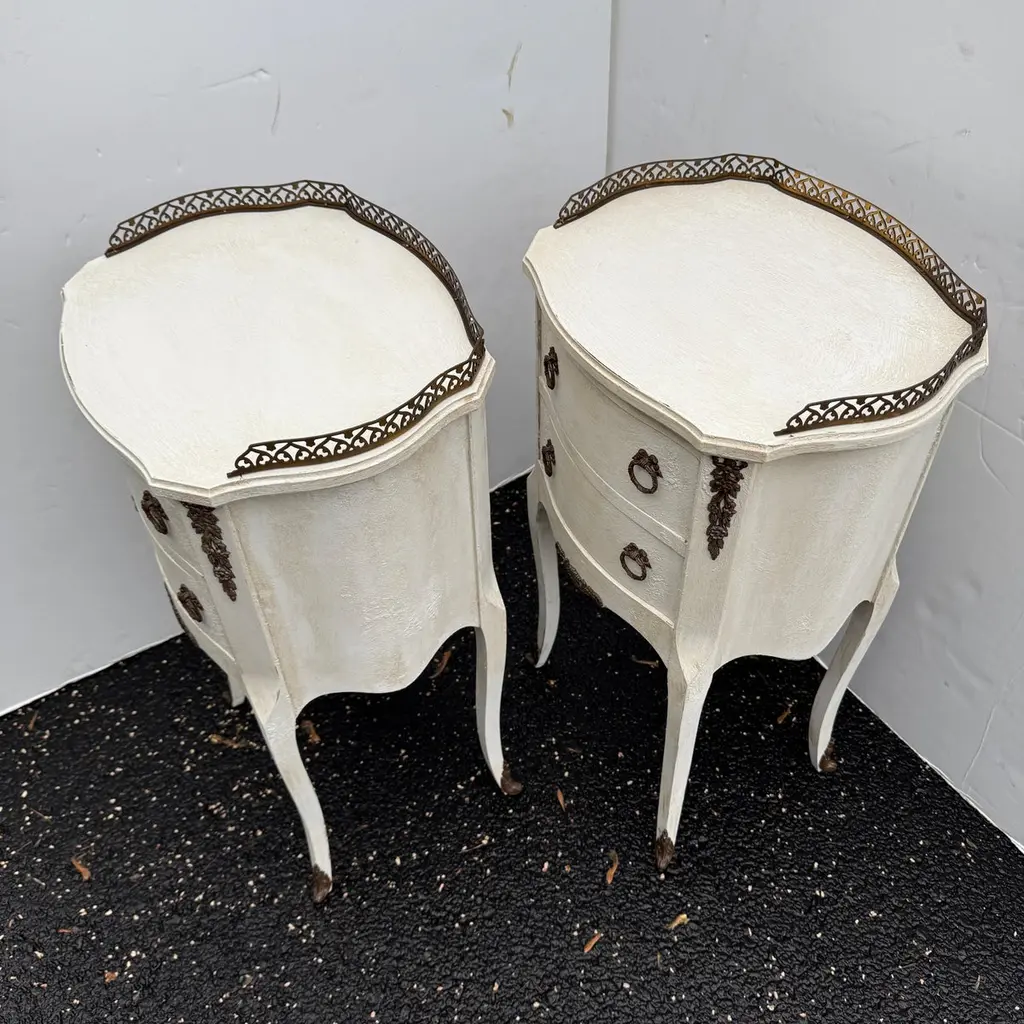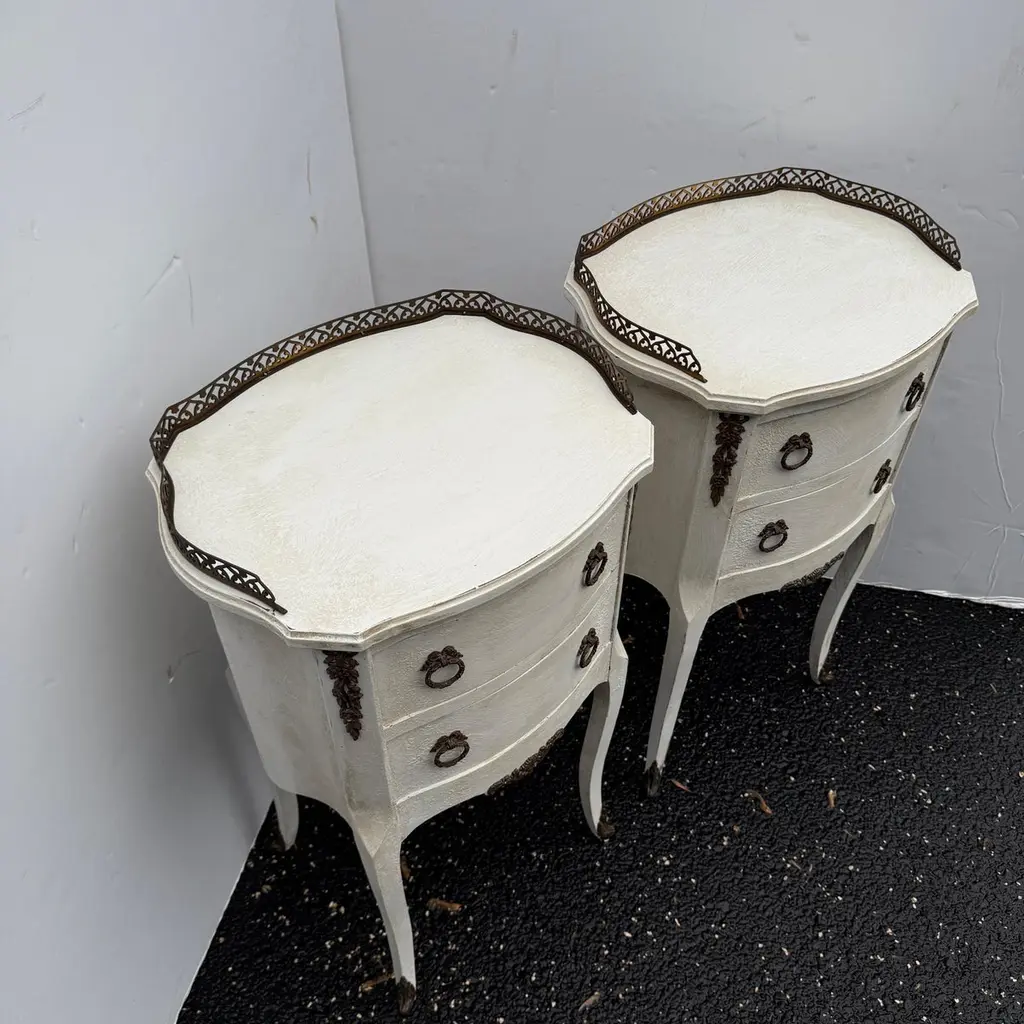 Pair Of French Painted Bedside End Tables With Two Drawers