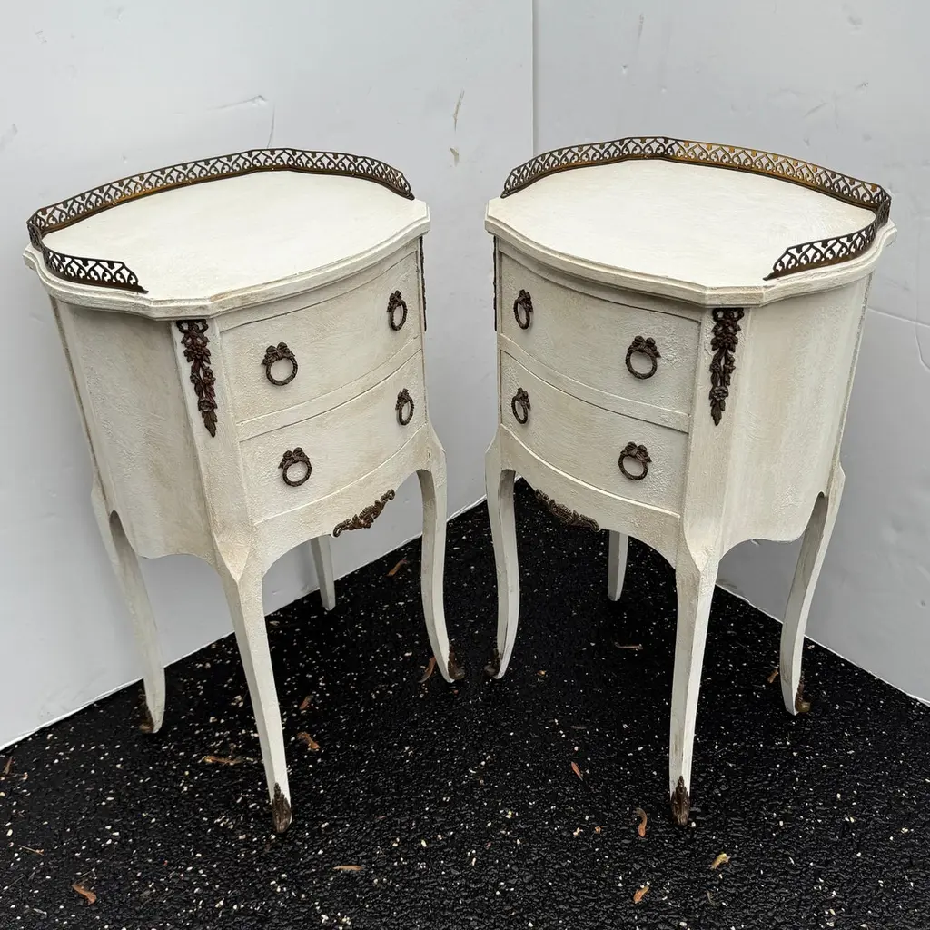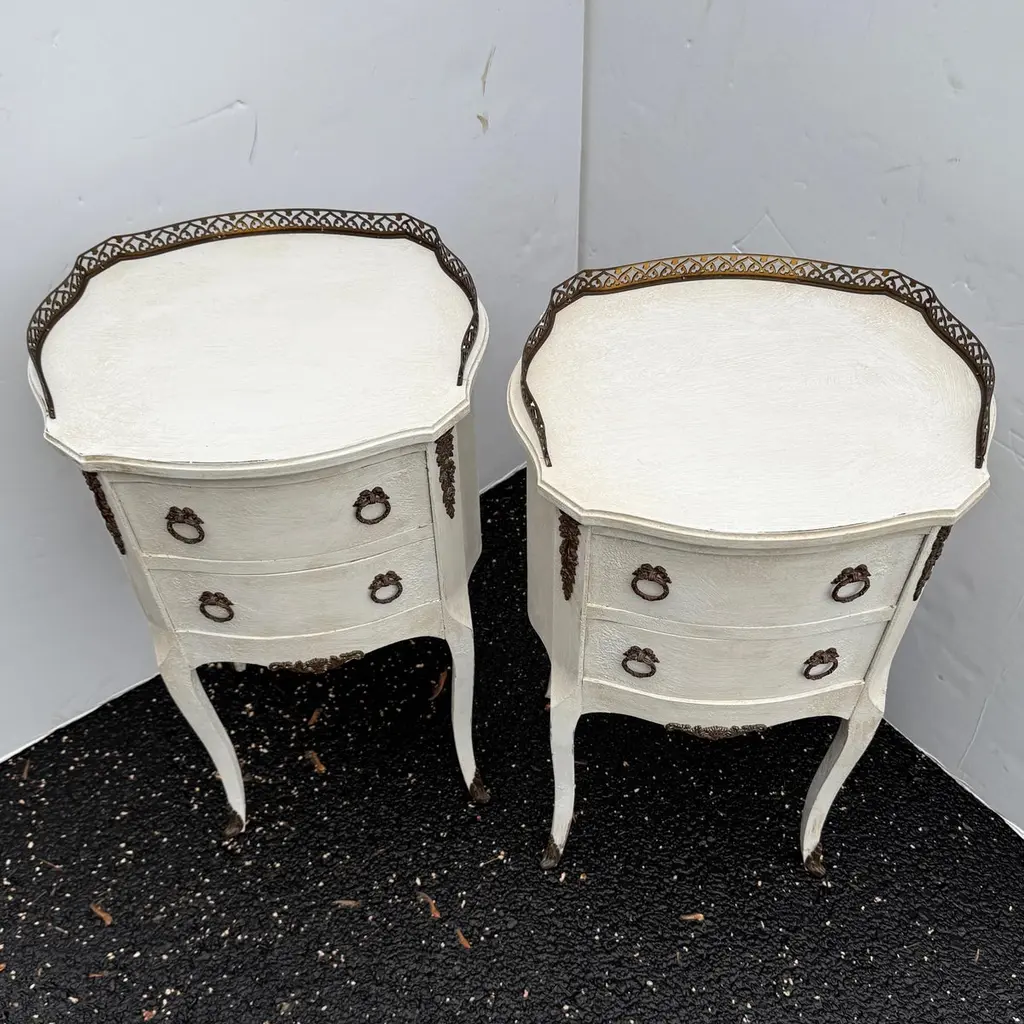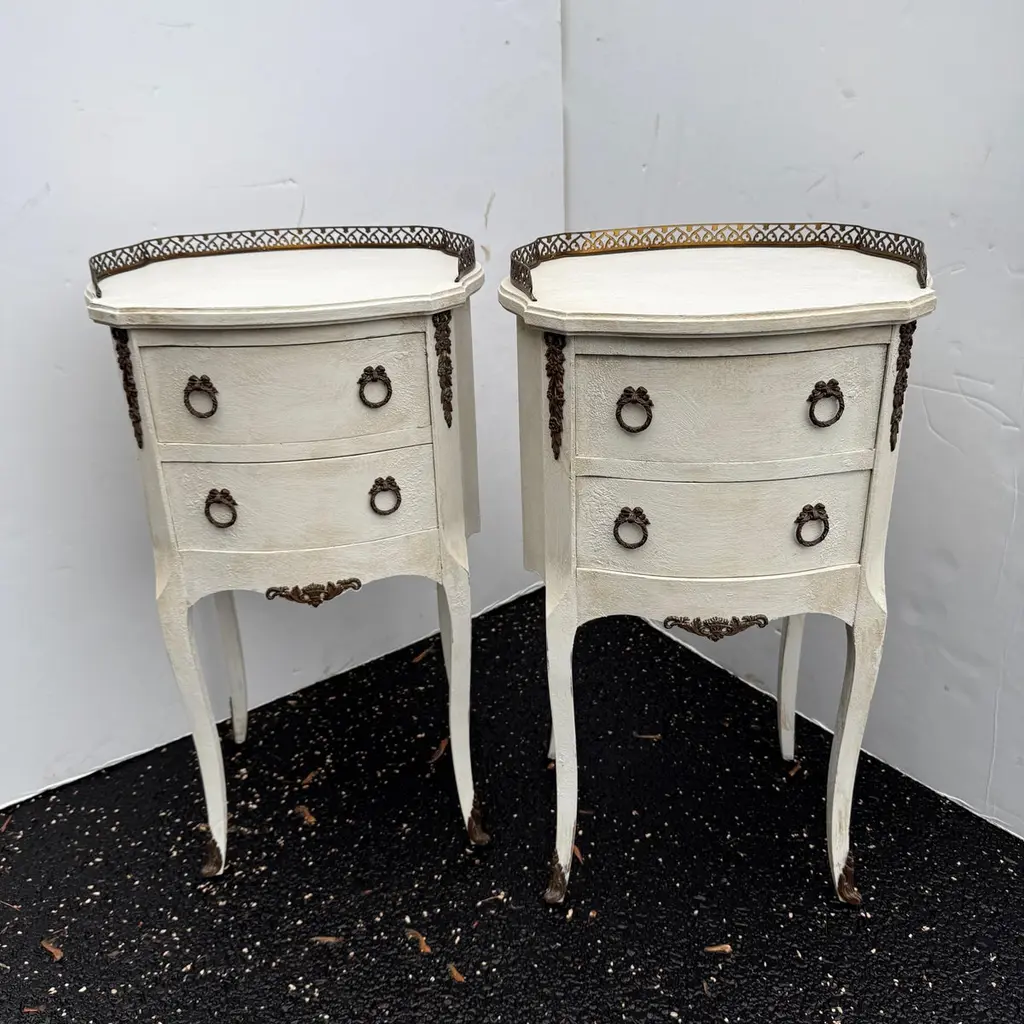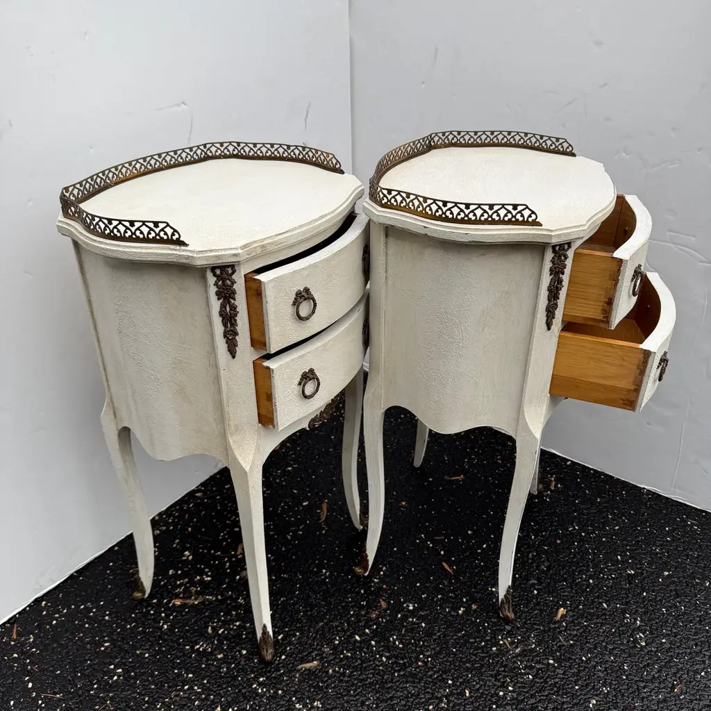 Pair Of French Painted Bedside End Tables With Two Drawers