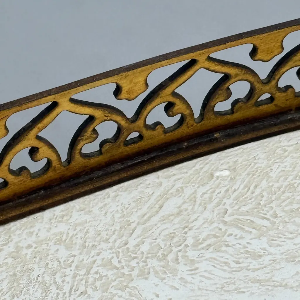 This pair of French two drawer nightstands or bedside tables have been constructed from solid wood and have been painted in a light neutral gray cream color. Classic details on this set including brass rails and hardware with a hand-applied finish. This set certainly brings vintage old-world charm to any formal or informal living or bedroom setting.