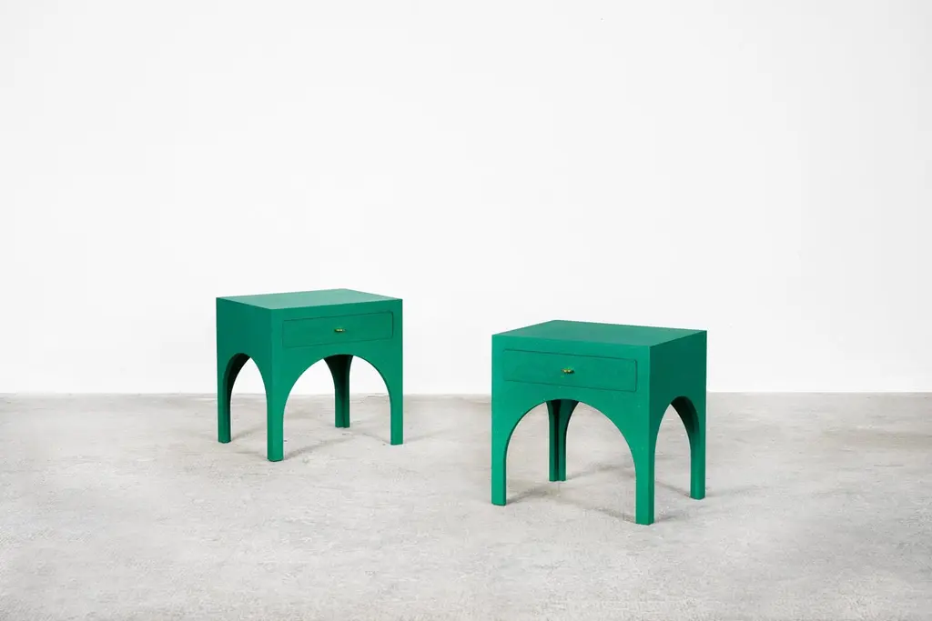 Pair Of Green Minimalist Nightstands Side Tables By Atelier Bachmann, 2019