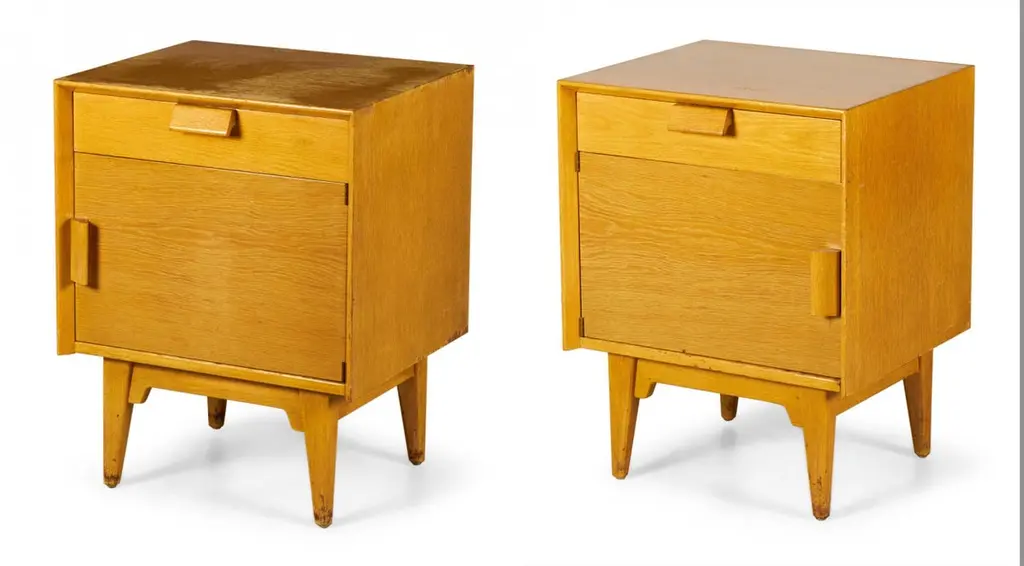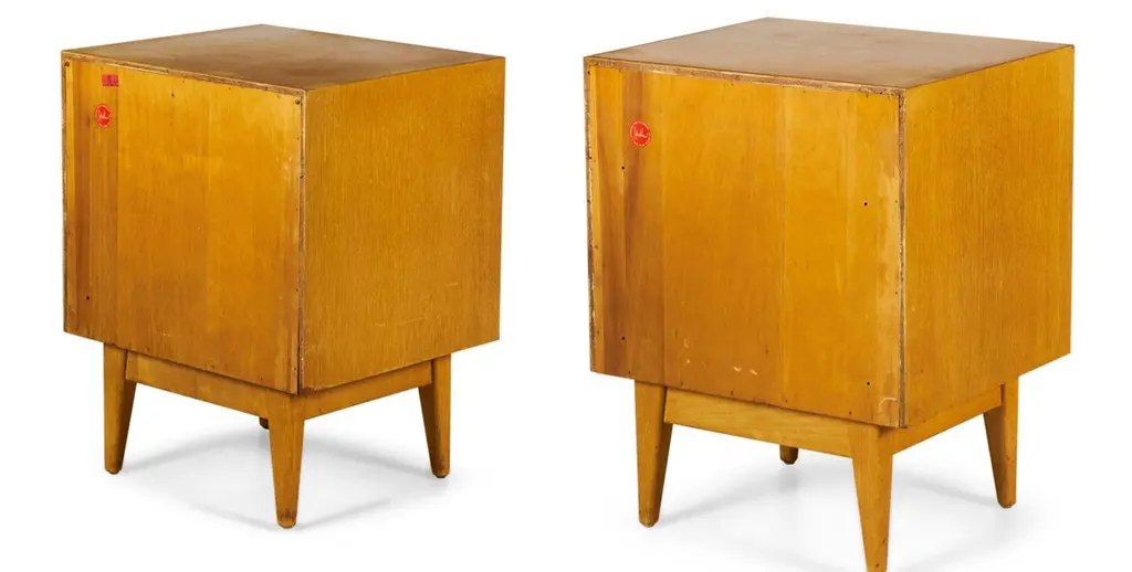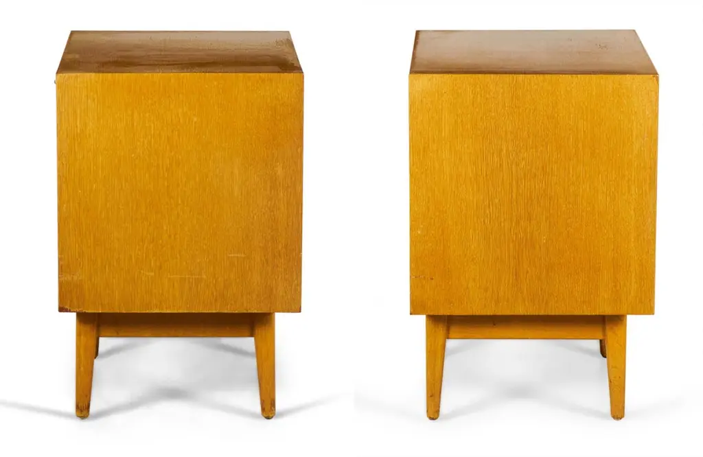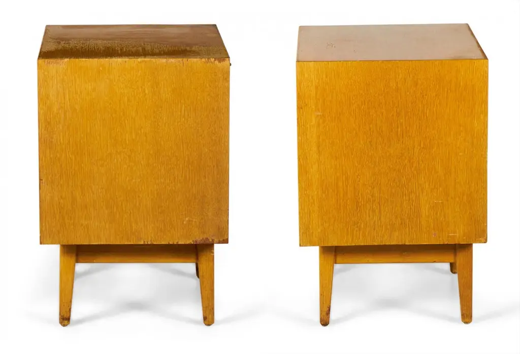 Pair Of Jens Risom Danish Mid-Century Blond Oak Bedside Table / Commodes
