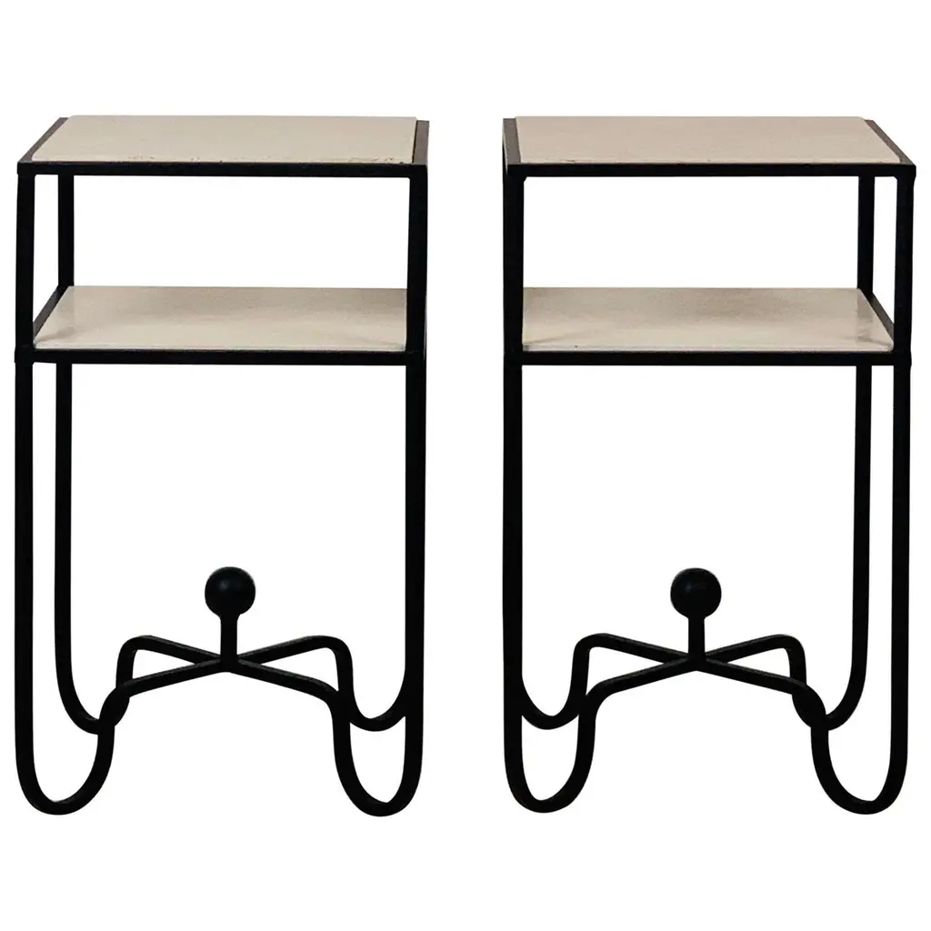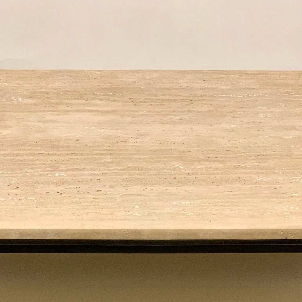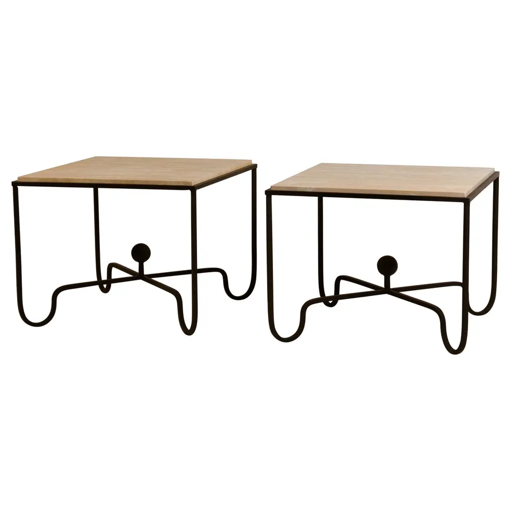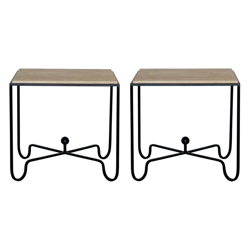 Pair Of Large ‘Entretoise’ Travertine Side Tables / Nightstands By Design Frères