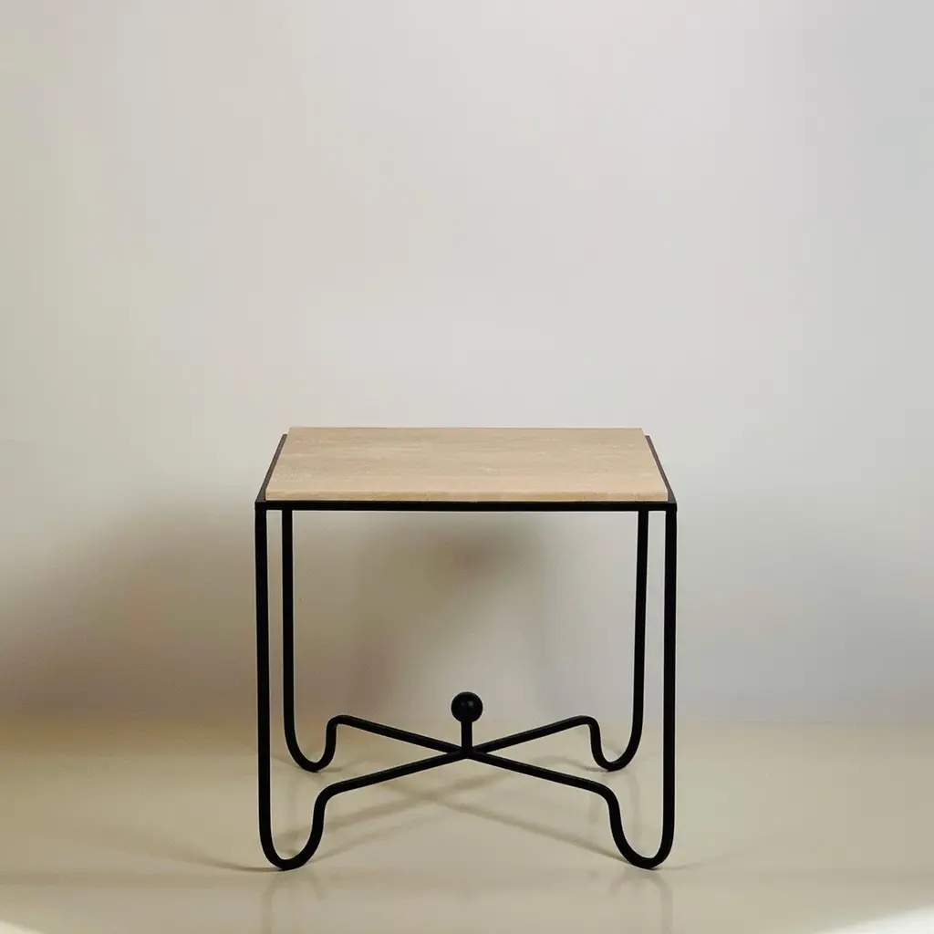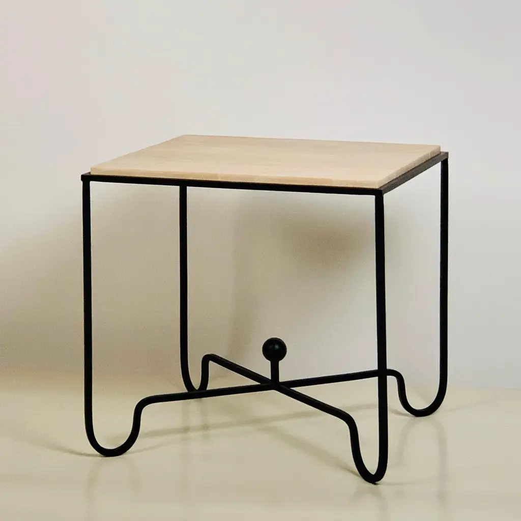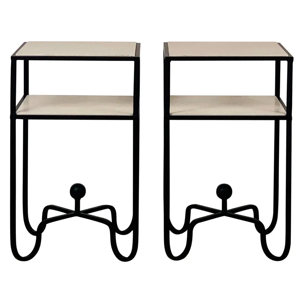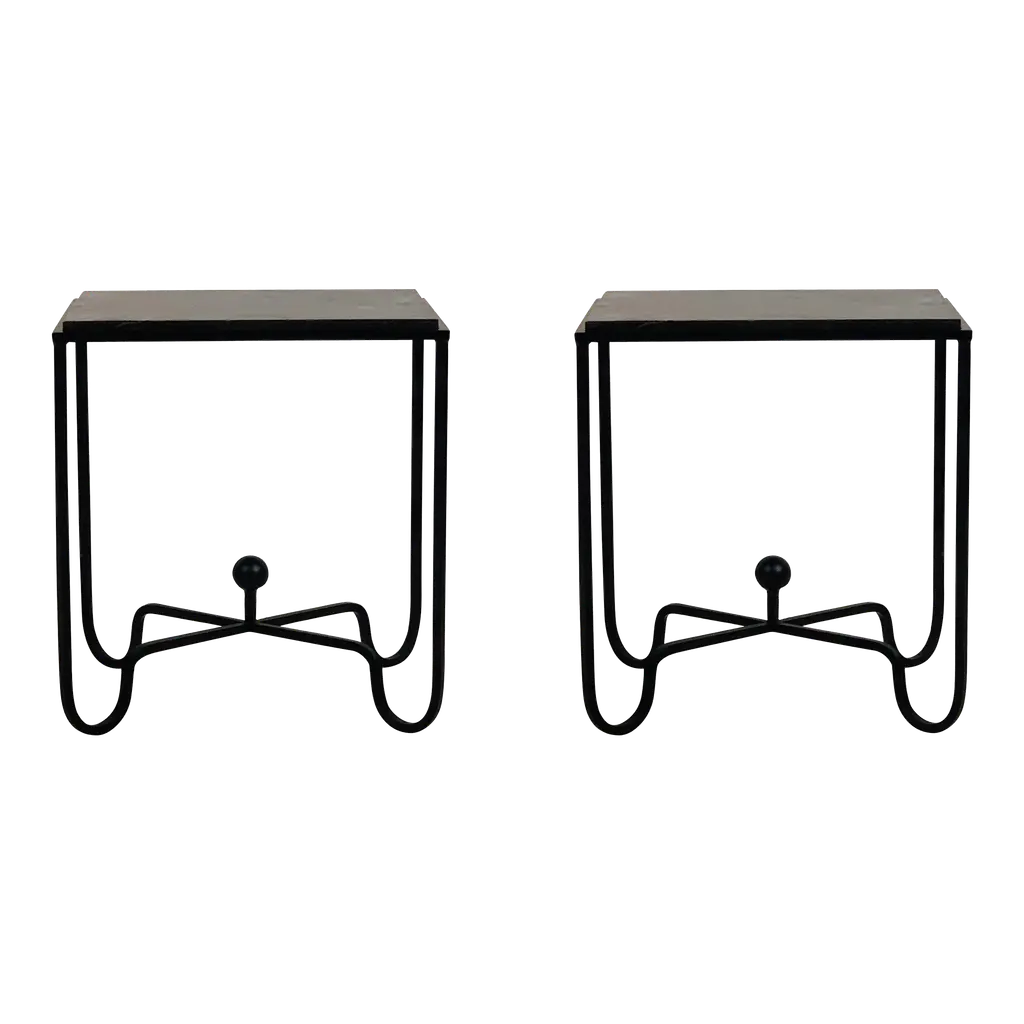Pair Of Large ‘Entretoise’ Travertine Side Tables / Nightstands By Design Frères