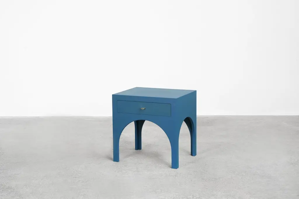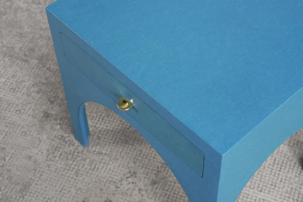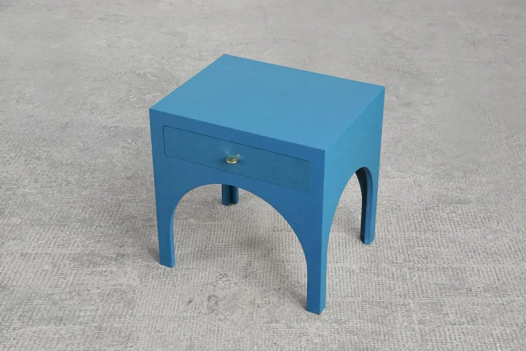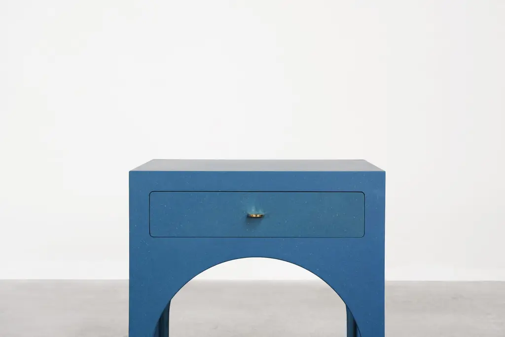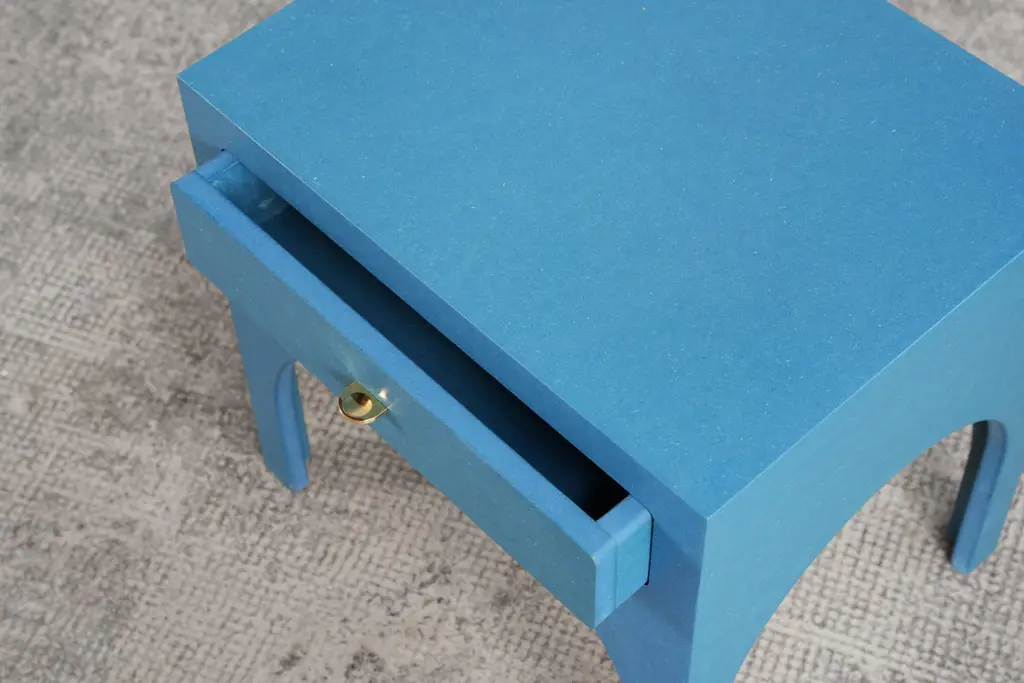 A beautiful pair of nightstands designed by Yuzo Bachmann for Atelier Bachmann, handcrafted in Germany, 2019.These nightstands are made out of blue valchromat and brass handles. Finished with natural furniture wax.Available made to order within 3-4 weeks.