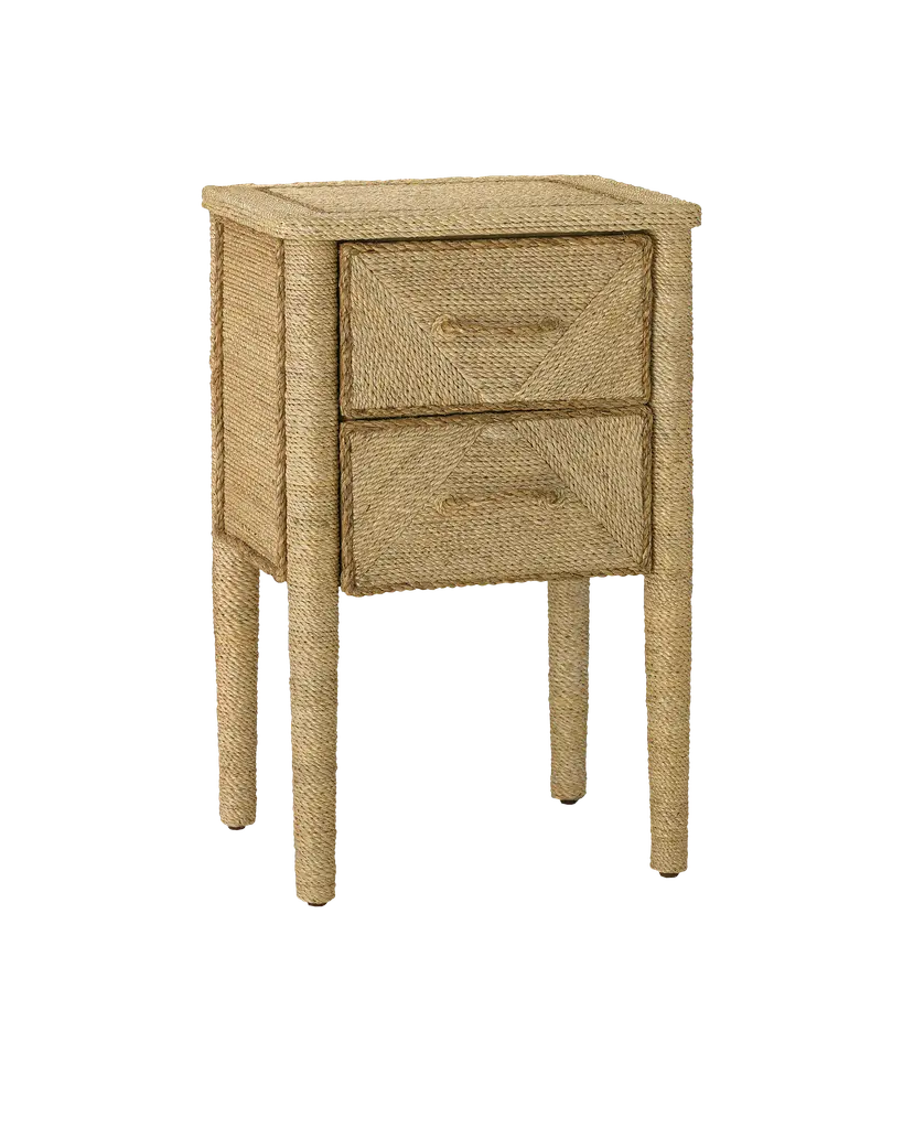 Wrapped in natural rattan, this stunning table combines modern design with coastal charm. It features spacious drawers for all your storage needs and an open lower shelf perfect for displaying your favorite decor items.The natural rattan finish adds a touch of elegance and warmth to any room while helping to keep your room clutter-free with ample storage space. Dimensions: 20" W x 20" D x 24" HCustom finish options are also available. Contact us to learn more.