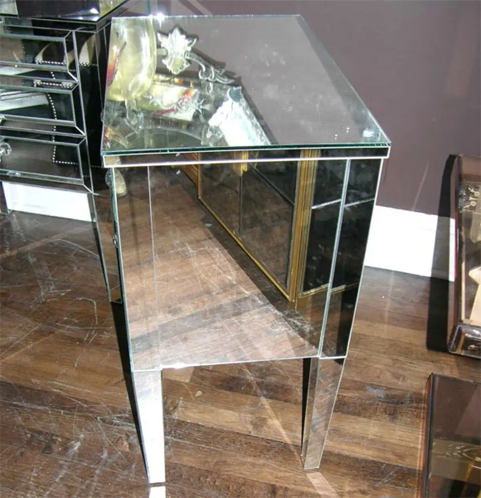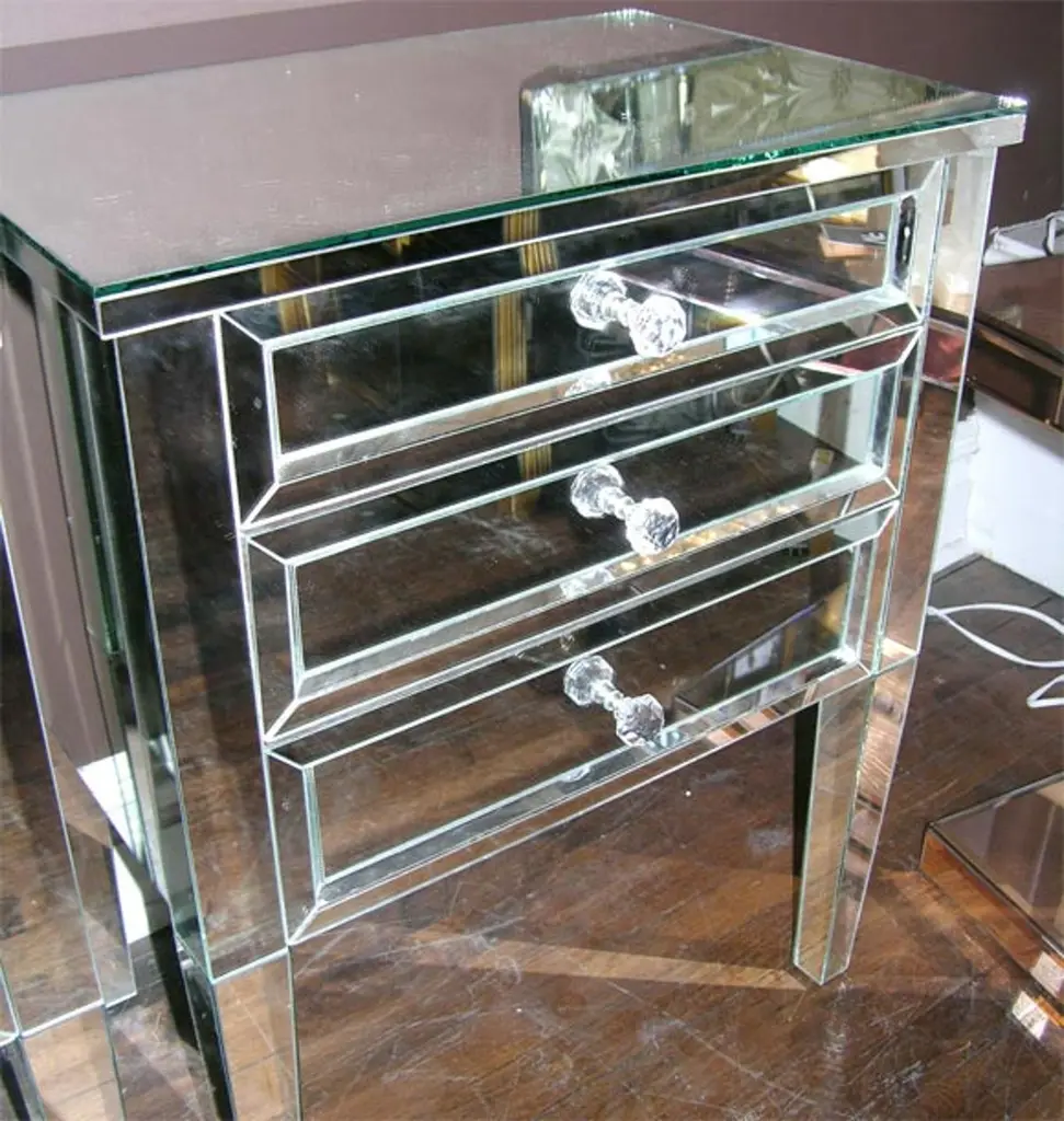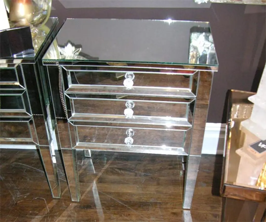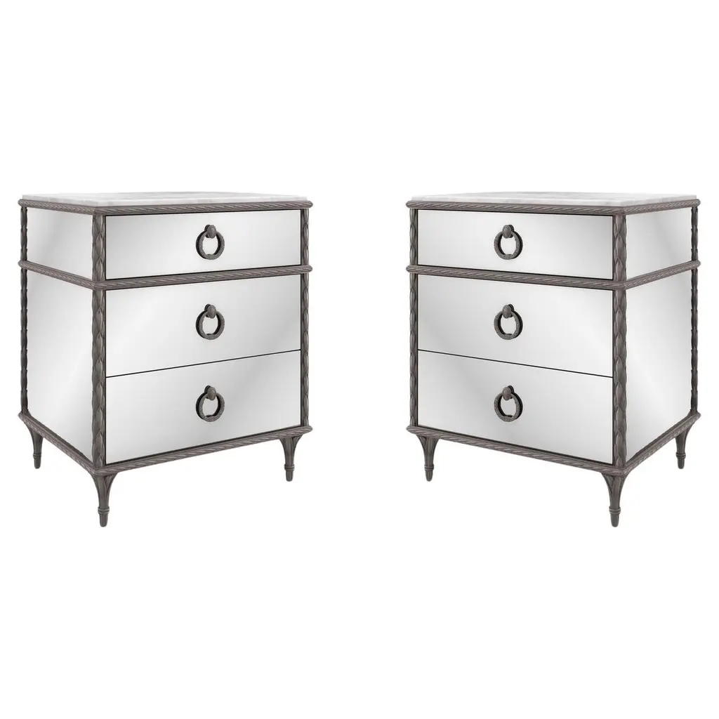 Pair Of Neoclassical Modern 3-Drawer Beveled Mirrored Nightstands
