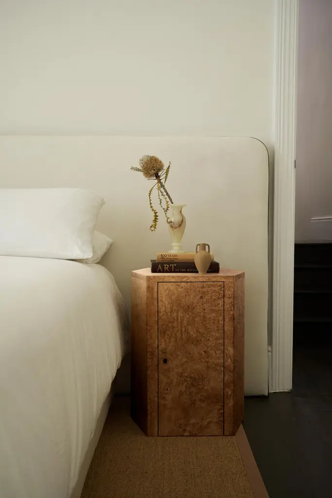 Structure:Made from Poplar Burl veneer with solid oak edging, the Park Nightstand is finished with matching veneer on both the exterior and interior. The inside includes an adjustable shelf. Natural variations in grain and color make each piece unique.Hardware:Blackened brass handleØ12 mm (½″) × 25 mm (1″)Product Dimensions:D 36 cm (14″) × W 46 cm (18″) × H 60 cm (24″)Designed by Yaniv Chen of Master Studio for Lemon
