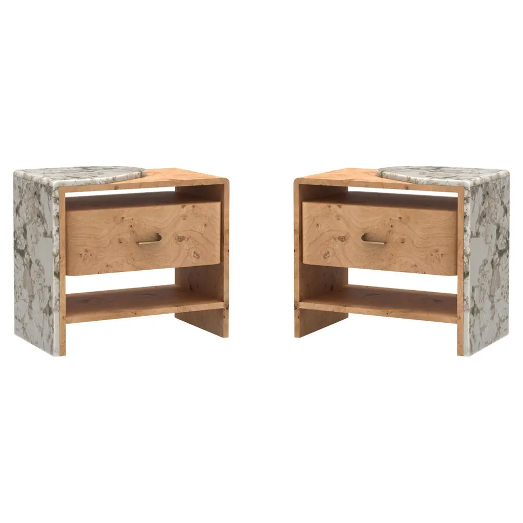 Pair Of Park Night Stands In Poplar Burl By Yaniv Chen For Lemon