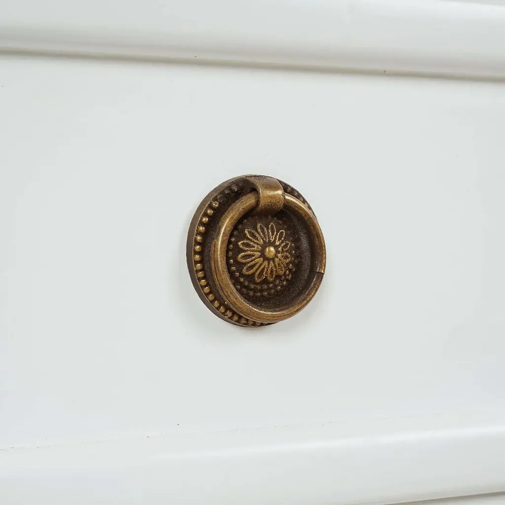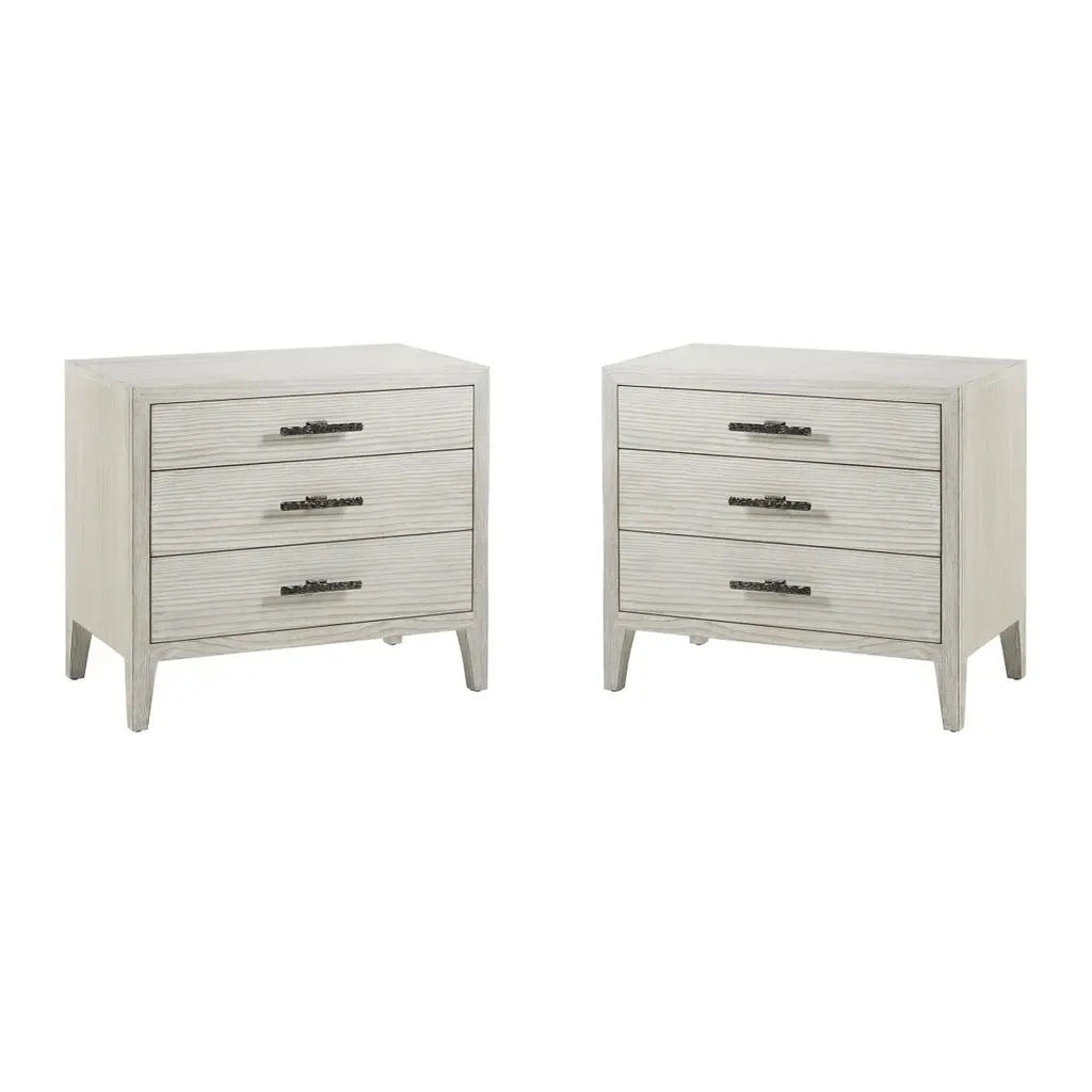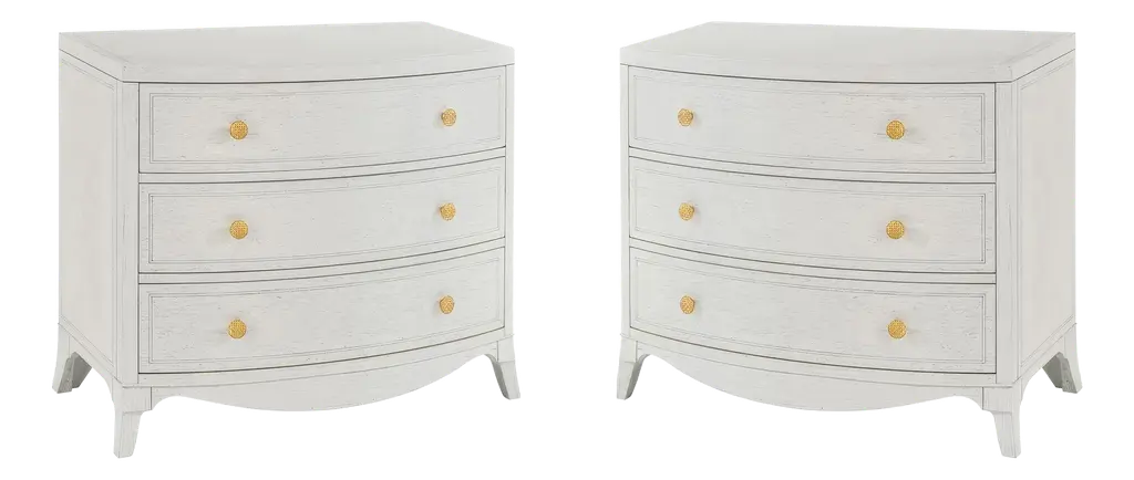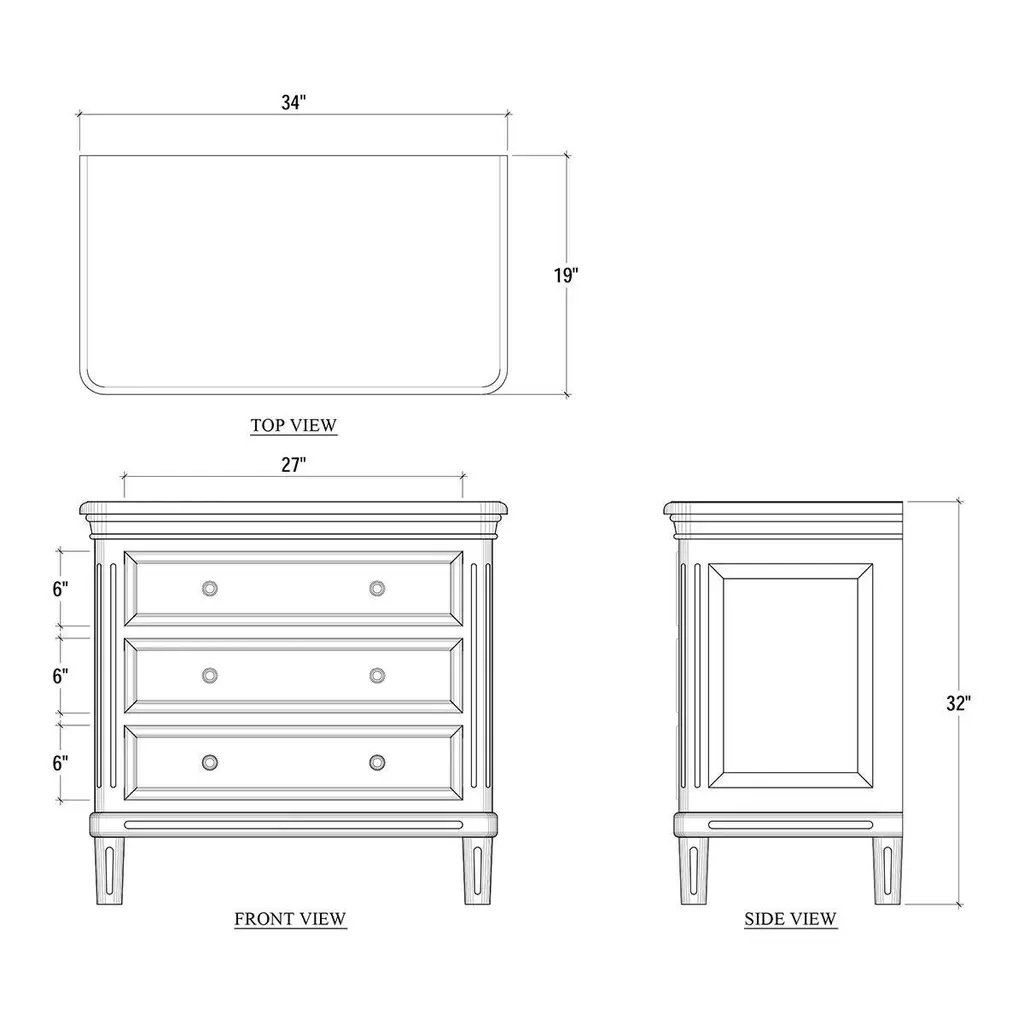Crafted from solid mahogany, this nightstand offers long-lasting durability while showcasing a timeless rustic and neo-classic design. Its lightly distressed architectural white painted finish adds a touch of sophistication, creating a soft, elegant appeal.With three spacious drawers, this nightstand provides ample storage for your bedside essentials, making it both a practical and stylish piece. Whether used in the bedroom or as an accent piece, it enhances your space with its beauty and versatility.Dimensions: 34" W x 19" D x 32" HCustom finish options are also available. Contact us to learn more.