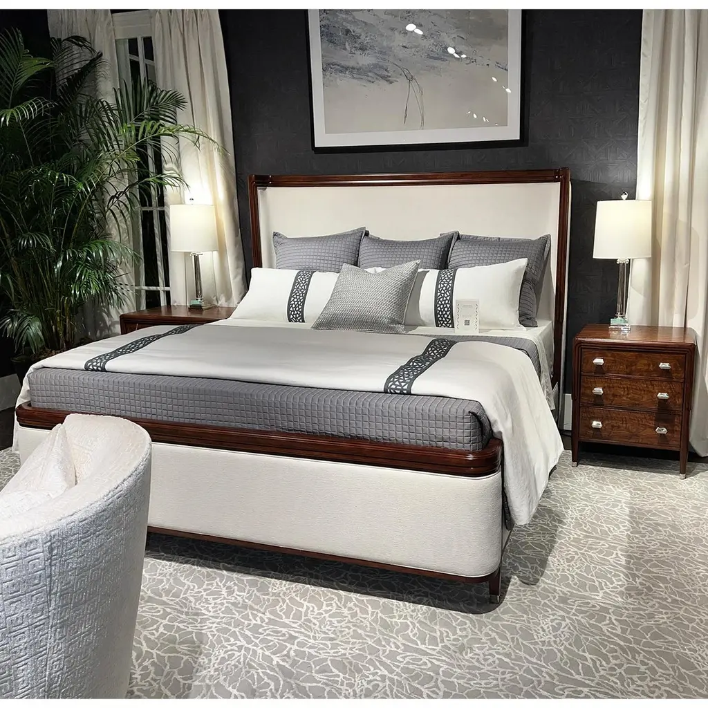 Embodying the refined luxury of early 20th-century design, this bedside chest is crafted with exquisite figured walnut, showcasing a rich wood grain that adds depth and character. Its poised silhouette is enhanced by expertly tapered legs and subtle molding details, while sleek metal hardware introduces a contemporary touch.The three spacious drawers offer ample room for organizing essentials, seamlessly blending style with practicality. Whether complementing a classic Art Deco interior or adding a vintage-inspired accent to modern spaces, the nightstand stands as a statement of understated opulence.Dimensions: 24" W x 20" D x 28.5" H