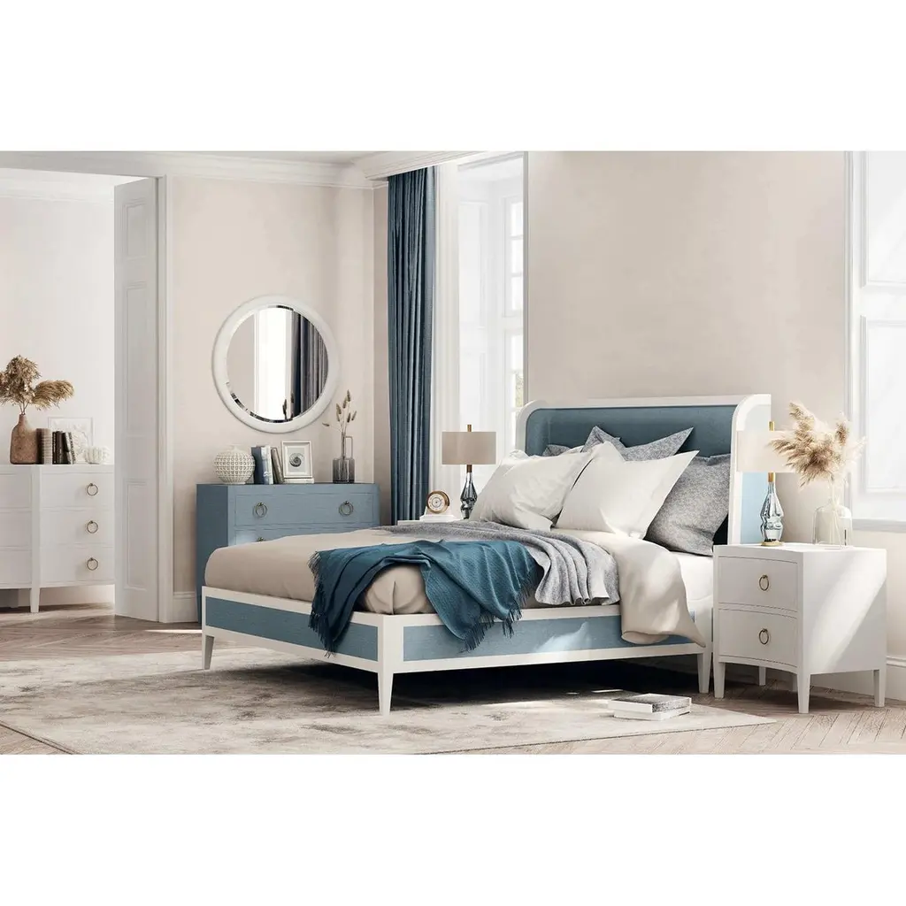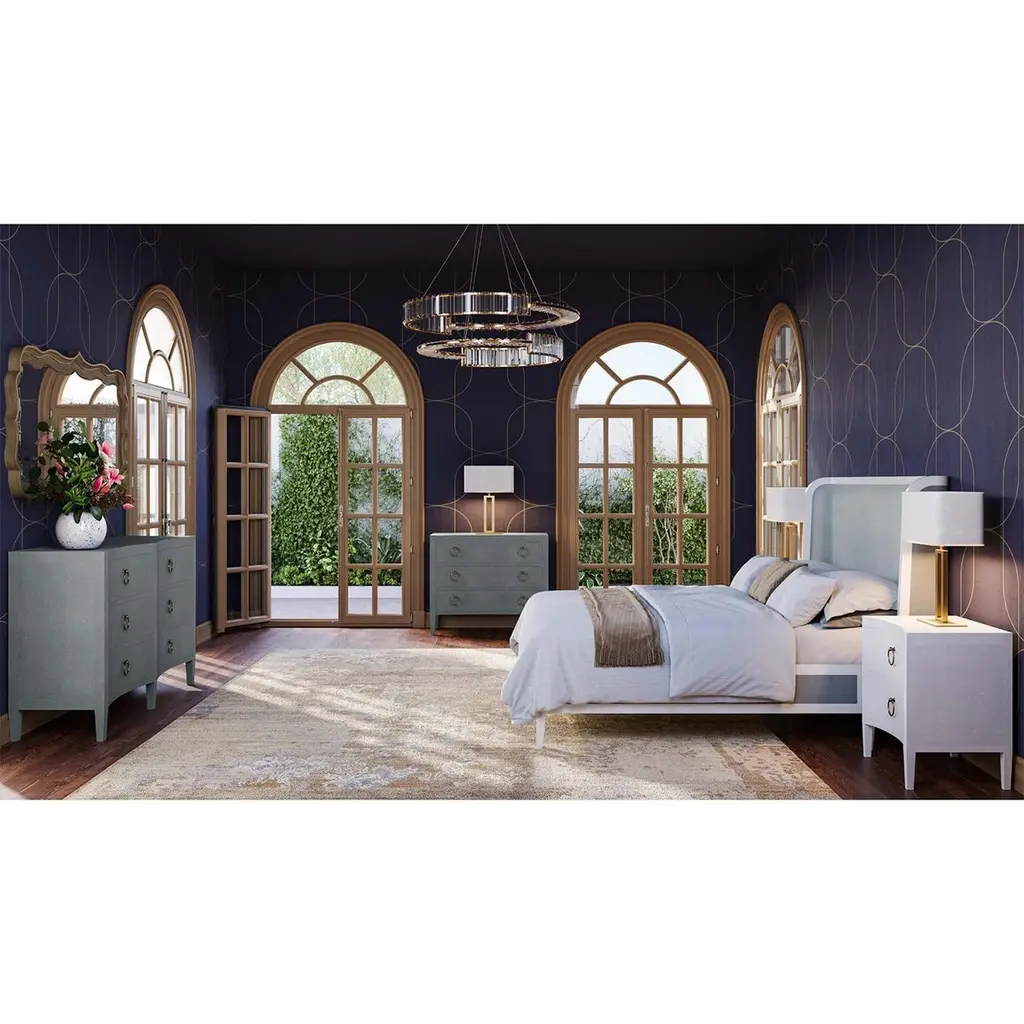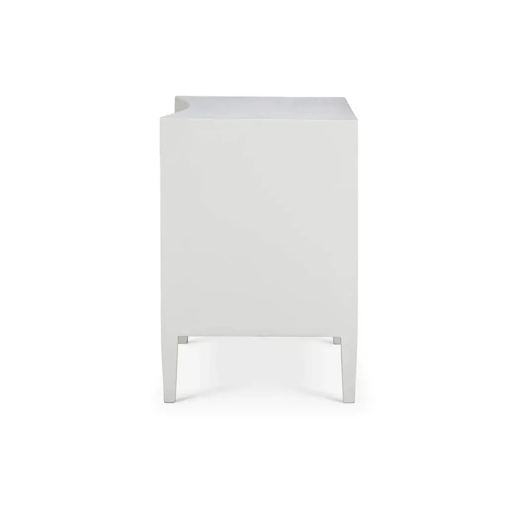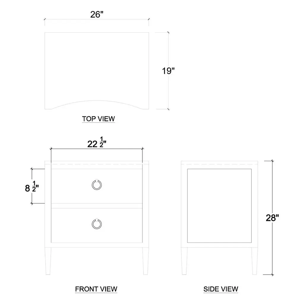This elegant piece features a sleek, minimalist design wrapped in clean white linen, exuding a calm and serene aesthetic.The subtle texture of the linen finish enhances its modern appeal, while the two spacious drawers provide ample storage for your bedside essentials. Adorned with chic gold ring pulls, this chest effortlessly combines functionality with refined elegance, making it a standout piece in any room.Dimensions: 26" W x 19" D x 28" H