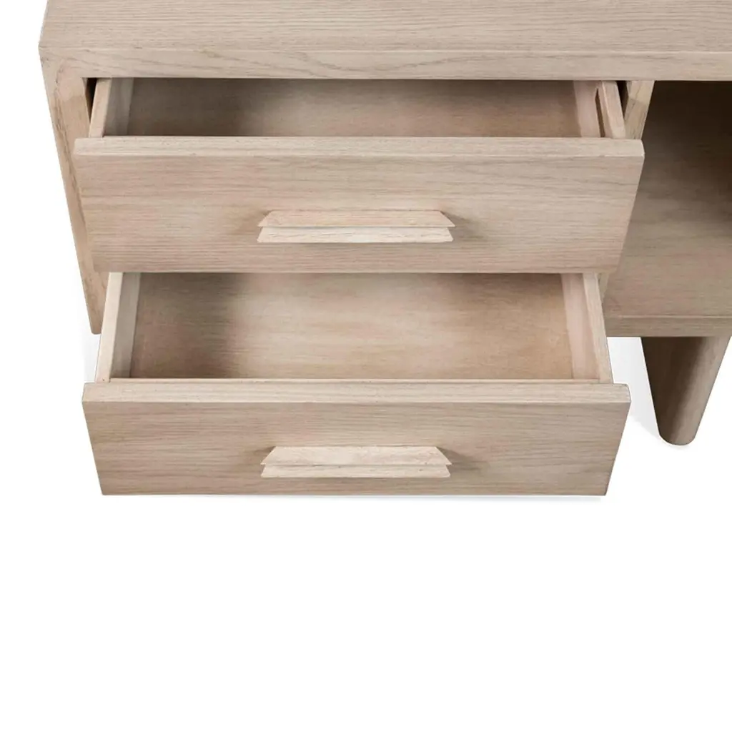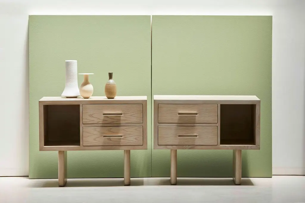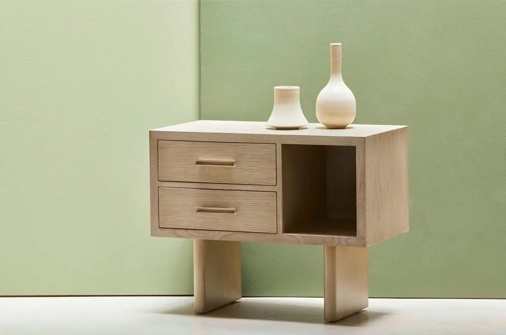 The Inverness Nightstand features two drawers with carved pulls and one open section on solid wood plank legs. Wall mounted version available. Specify at time of order.The Lawson-Fenning Collection is designed and handmade in Los Angeles, California. Reach out to discover what options are currently in stock.