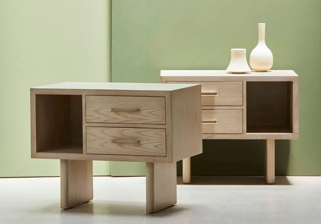 Pair Of White Washed Oak Inverness Nightstands By Lawson-Fenning