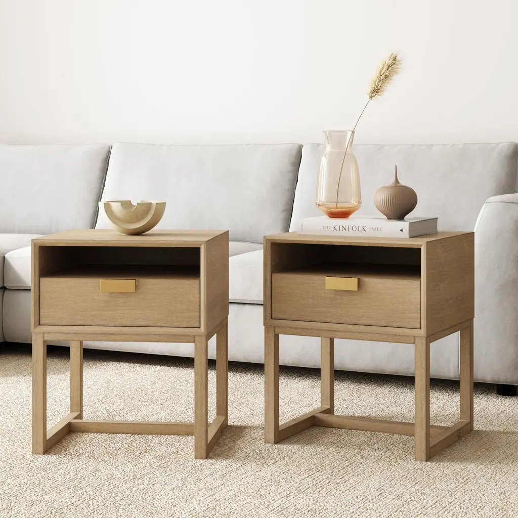 Pair Of Widdicomb Modern Blond Maple Tall Single-Door Cabinet / Nightstands