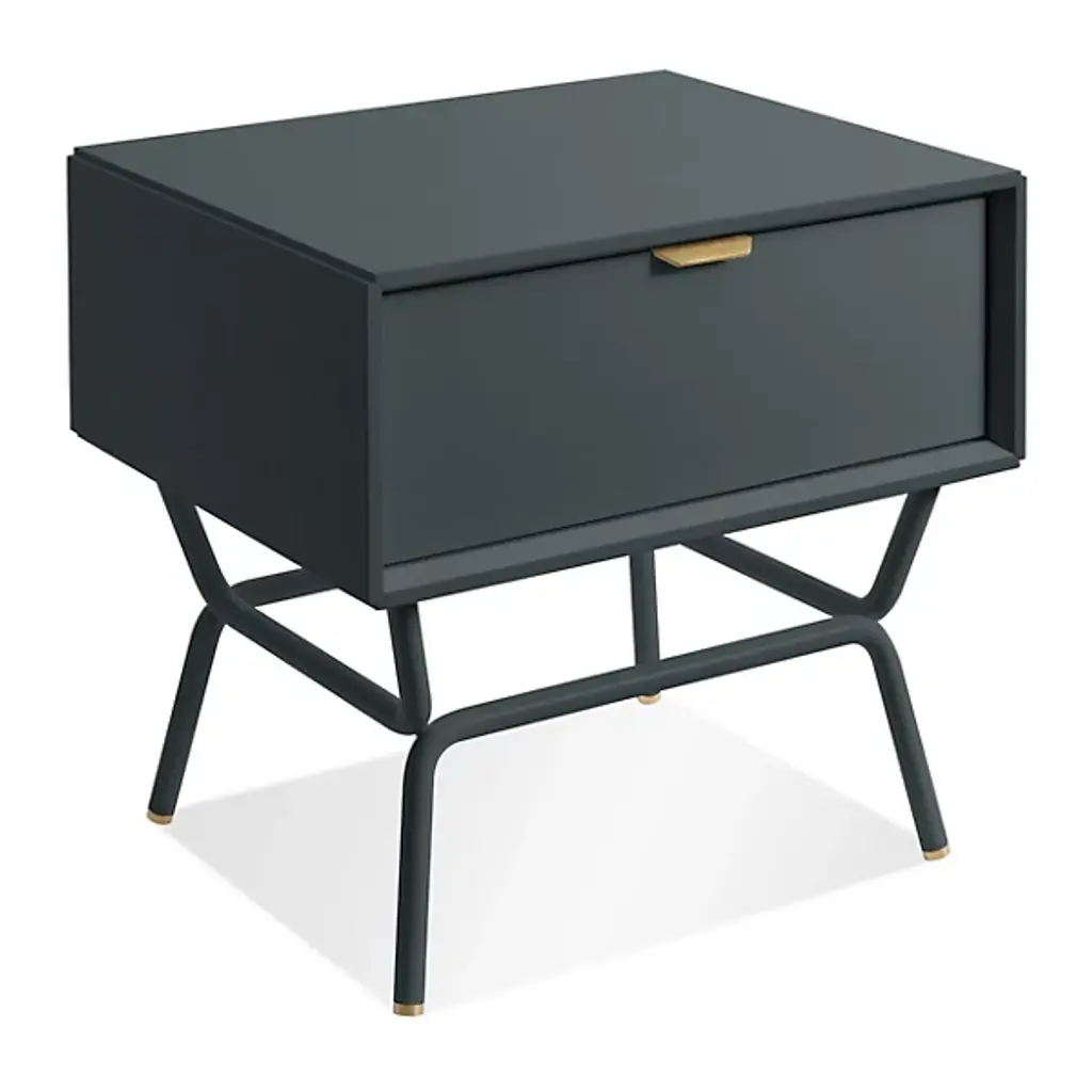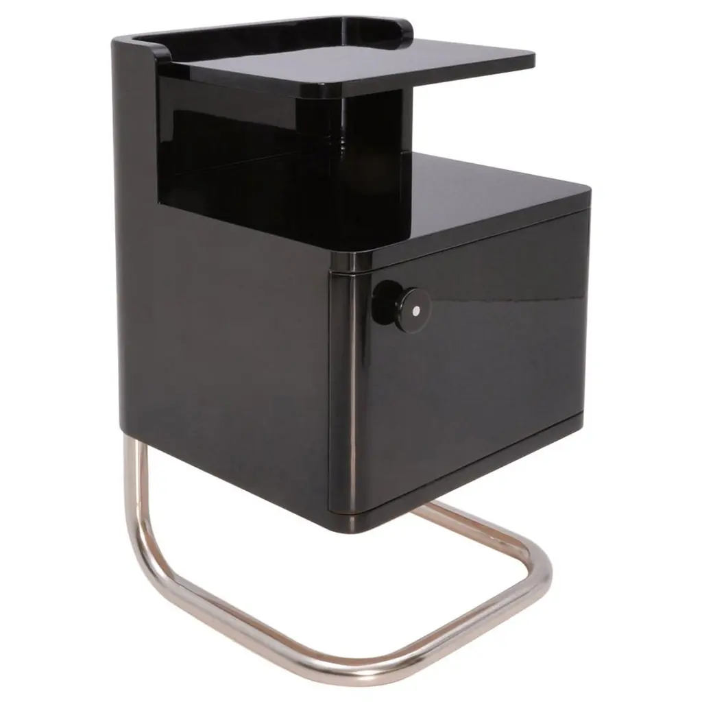The Palafitta bedside table in gray features a clever and contemporary style consisting of a fixed upper element and drawer or lower open compartment, on a supporting base in tubular metal of 40 x 40 mm dimensions in section, finished in a black lacquer. This sturdy and stylish item has the convenient drawer module positioned in the lower section.