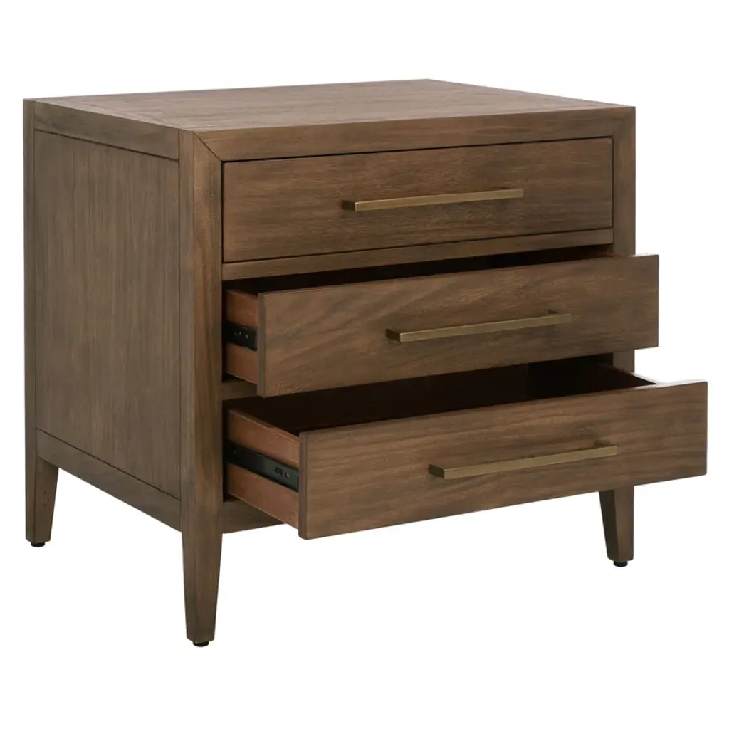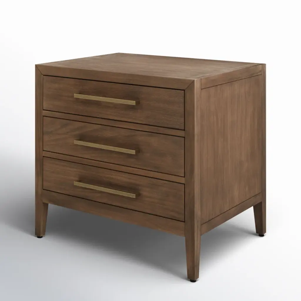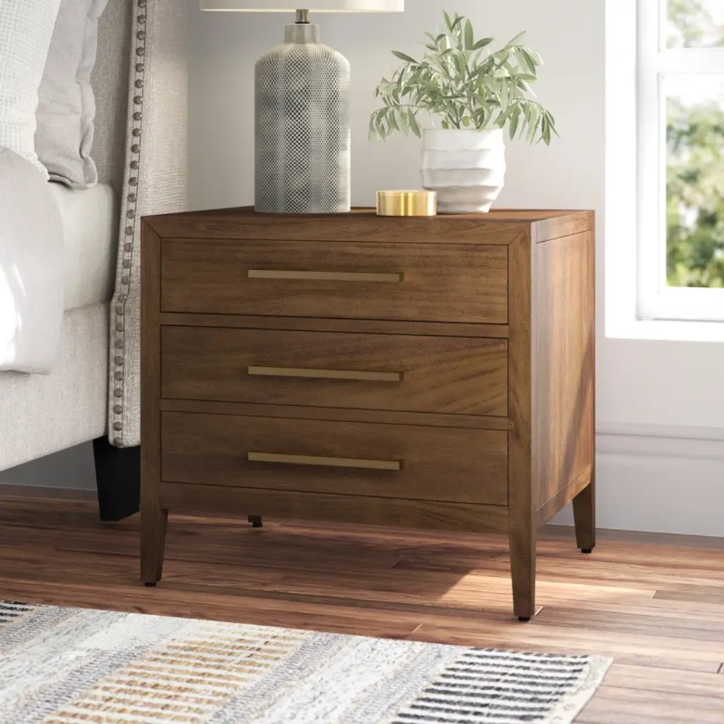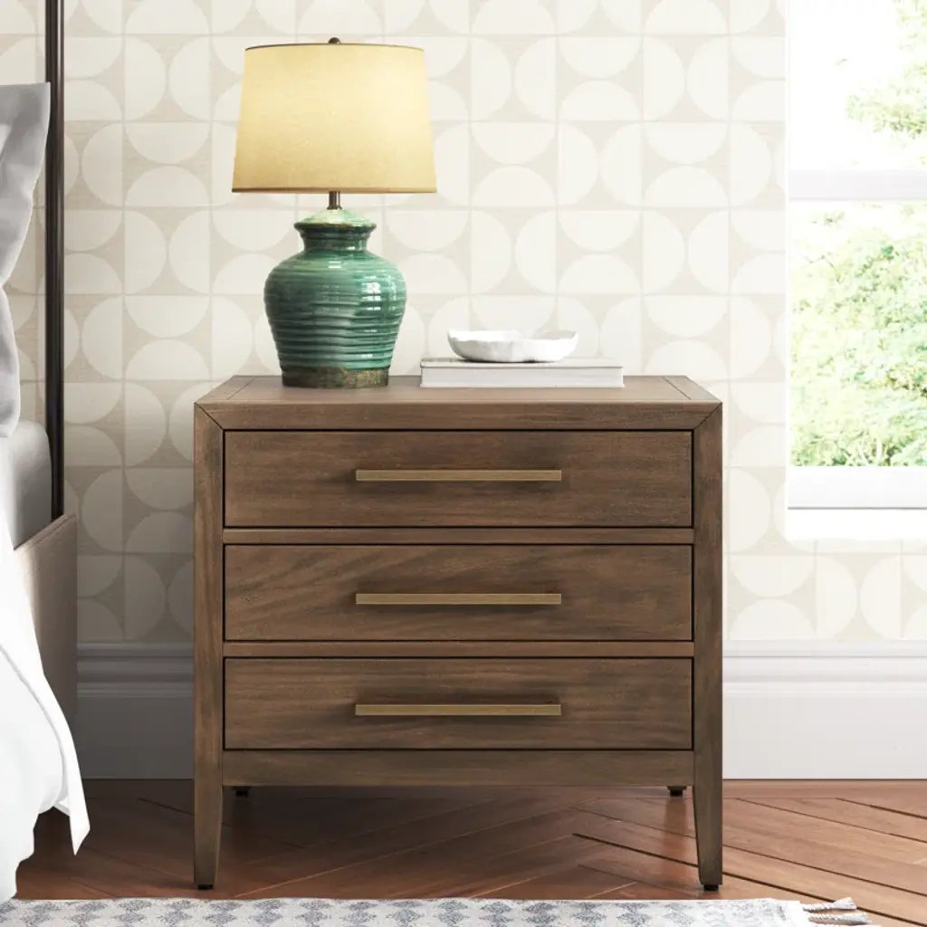 This 3-drawer nightstand adds a touch of timeless elegance to your bedroom or guest room while keeping your bedside essentials organized and at arm's reach. We love how the drawers offer out-of-sight storage for your journals, charging cables, and more. It's made from solid and engineered wood with a finish that highlights the natural grain variation, and the metallic hardware offers just the right amount of artistic contrast. Plus, it arrives fully assembled, so it's ready for styling right out of the box.