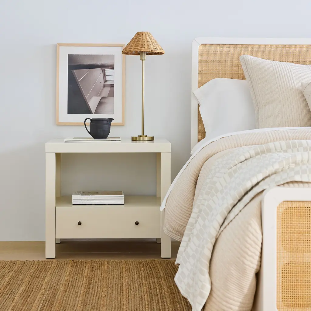Streamlined and scaled for the primary bedroom. Clean lines with a glossy lacquer finish. Made from kiln-dried, sustainably sourced wood. Contract Grade, so you know it's built to last.