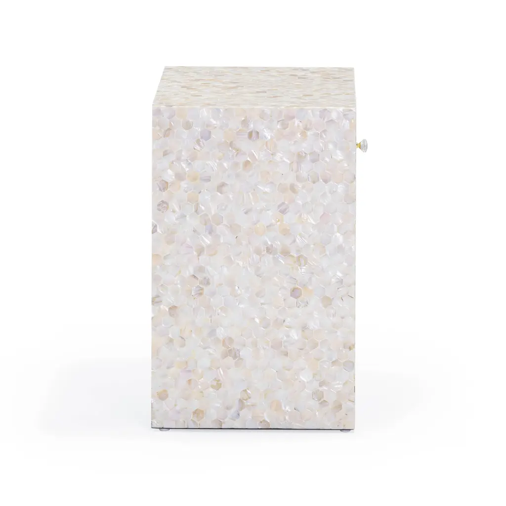 Piara 22" Natural Mother Of Pearl Inlaid Nightstand With Drawer