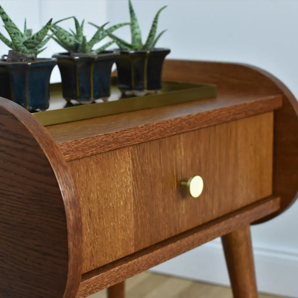 Pona Bedstand by PastformDimensions: D 40 x W 45 x H 50 cm.Materials: Stained and varnished wood.Available in different wood color finishes: Whiskey, Rum, BPA, Nobel, Brandy, Schwarz, and Natura. Please contact us.The Pona nightstand is a tribute to the minimalism and design of the 1950s and 1960s. It is characterized by a simple, almost ascetic form and details and colors typical of the turn of the aforementioned decades. Although in a retro style, it fits perfectly with modern interiors. Its greatest advantages include excellent quality and versatility, as well as functionality.Pona bedside tables, although created with the bedroom in mind, will also work well in other interiors. We imagine that they will perfectly serve as a coffee table in a small living room, a cupboard in the hall, and even a piece of furniture for a child's room. We know from our customers that there are many possibilities for their use. We use only natural materials for the production of all our furniture. It is to these raw materials that Pastform products owe their unique, elegant appearance and exceptional durability.The furniture is entirely made of wood covered with oak veneer. We use only natural materials for production, therefore individual models may differ in the arrangement of rings and color. The Pona bedside table is finished with stain and varnish.Rooted in a good traditionThe Pastform Furniture studio dates back to the 1990s. Having in mind the idea of a traditional family company, Dawid Gełeta established a carpenter’s shop in 1997. The company specializes in the manual production of utility furniture. Times have changed and with them, fashion has changed. In 2016 we decided to change the direction, following the growing demand for vintage furniture.My name is Mateusz Gełeta, I am the son of the carpenter who founded the company. From an early age, I have watched my dad’s work. He put his whole heart into creating furniture, polishing every detail with his strong hands and making sure that nothing escaped our attention before sending the product to the customer. He made sure that every piece of furniture was perfect and refined. We remain true to these principles.Following the blow, I decided to create a harmonious combination of modern quality with the classic style of the 1960s. This is why I designed and created a unique collection of wonderful furniture, which, in addition to its well-thought-out functionality, also creates a perfect design and composes original arrangements.The golden age of interior designIn the 1960s interiors used to take on a very characteristic touch. All over the world, this style was called a mid-century modern, locally it was simply – retro furniture. Simple, elegant minimalistic form, without unnecessary decorations and splendor. Decorating with the idea of an uncomplicated composition, it allows for an undisturbed selection of the arrangement accessories and emphasizes a high level of functional comfort. One might say – a perfect piece of furniture. Comfortable, hiding surprisingly many items despite quite neat dimensions, made of noble species of wood and created by hand, with a focus on carefully refined details. No wonder its popularity is growing so much.Unique, refined, with a soulEach piece of the Pastform collection represents a unique style. Thoughtful concept of usable comfort, refined details, carefully selected raw materials, and proven accessories. We use only high-quality boards which we veneer with oak, American walnut, and other durable wood species. They are carefully oiled with the best, hard, ecological oil waxes, giving the furniture its final shape. This technology brings out the natural beauty of wood, exposes the grain and unique design of each piece, highlights the beautiful color, and allows to achieve timeless durability.This is how unique, thoughtful, and refined furniture with a soul is created.Thinking about futureWe are trying to positively create the world of which we are a part, contributing to a better tomorrow. We cooperate with local suppliers, support small companies and production plants, care for ecology, and respect the needs of the land. We always strive to establish long-lasting, based-on-trust relationships with customers and contractors.Flexible, with openness and heart on handWe sincerely like what we do. Playing with the shape, structure, and texture of wood is fascinating. Creating new arrangements and coming up with innovations that will meet your expectations. We are proud of our products and we are happy to present you with our collection of refined furniture.All our vintage furniture can be made on request – fulfilling the boldest dreams and fantasies. See our offer and if you want to know more, feel free to contact us. We are waiting for you!