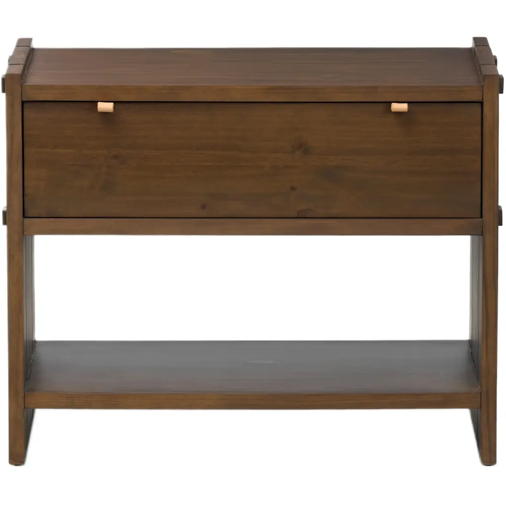 Porter 1-drawer Leather Nightstand, Tawny Pine