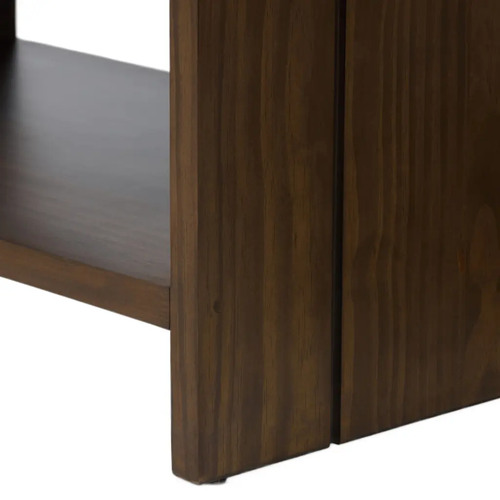 The Porter Nightstand is a testament to retro European design, exuding character and charm. Crafted from solid pine, this nightstand features mortise and tenon joinery that elegantly spans its sides, showcasing expert craftsmanship. The addition of top-grain leather door pulls provides a textural finishing touch, enhancing its sophisticated appeal. This piece is not only functional but also a stylish addition to any bedroom decor.