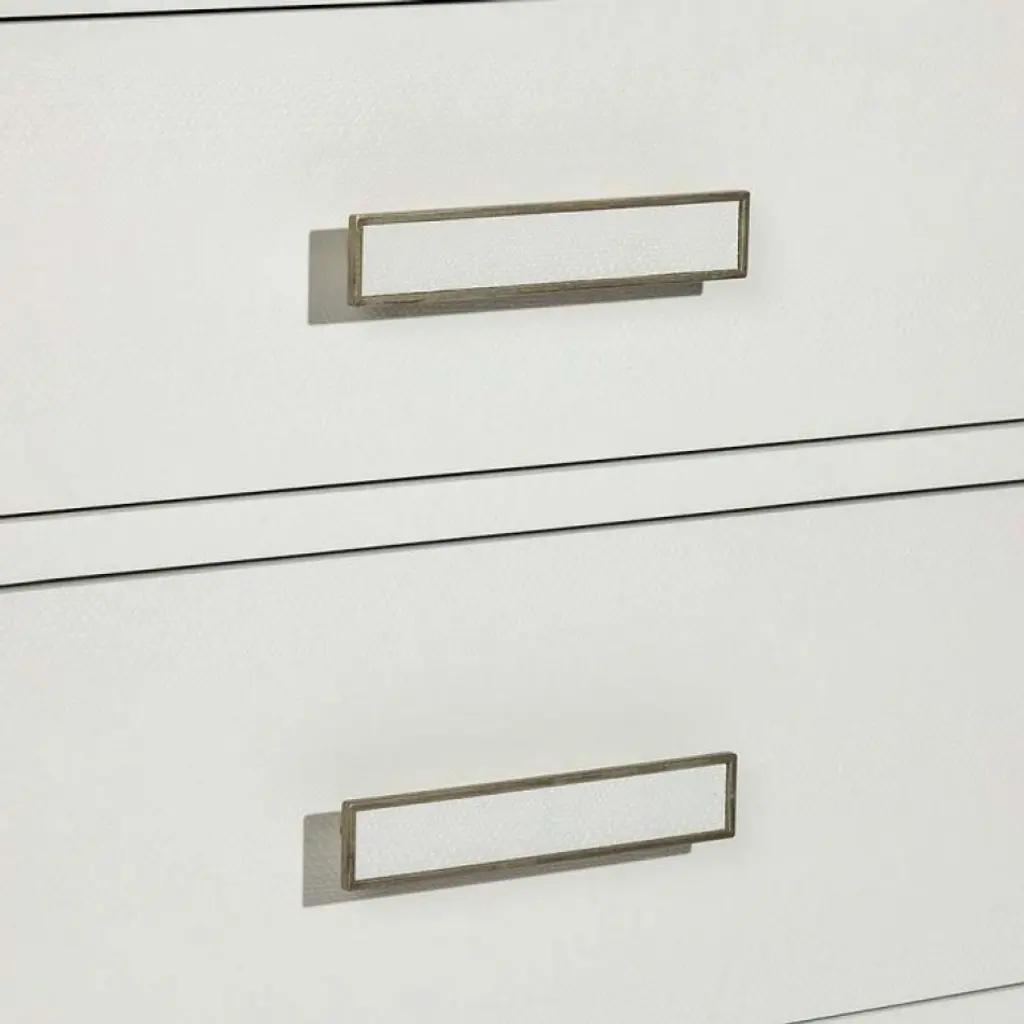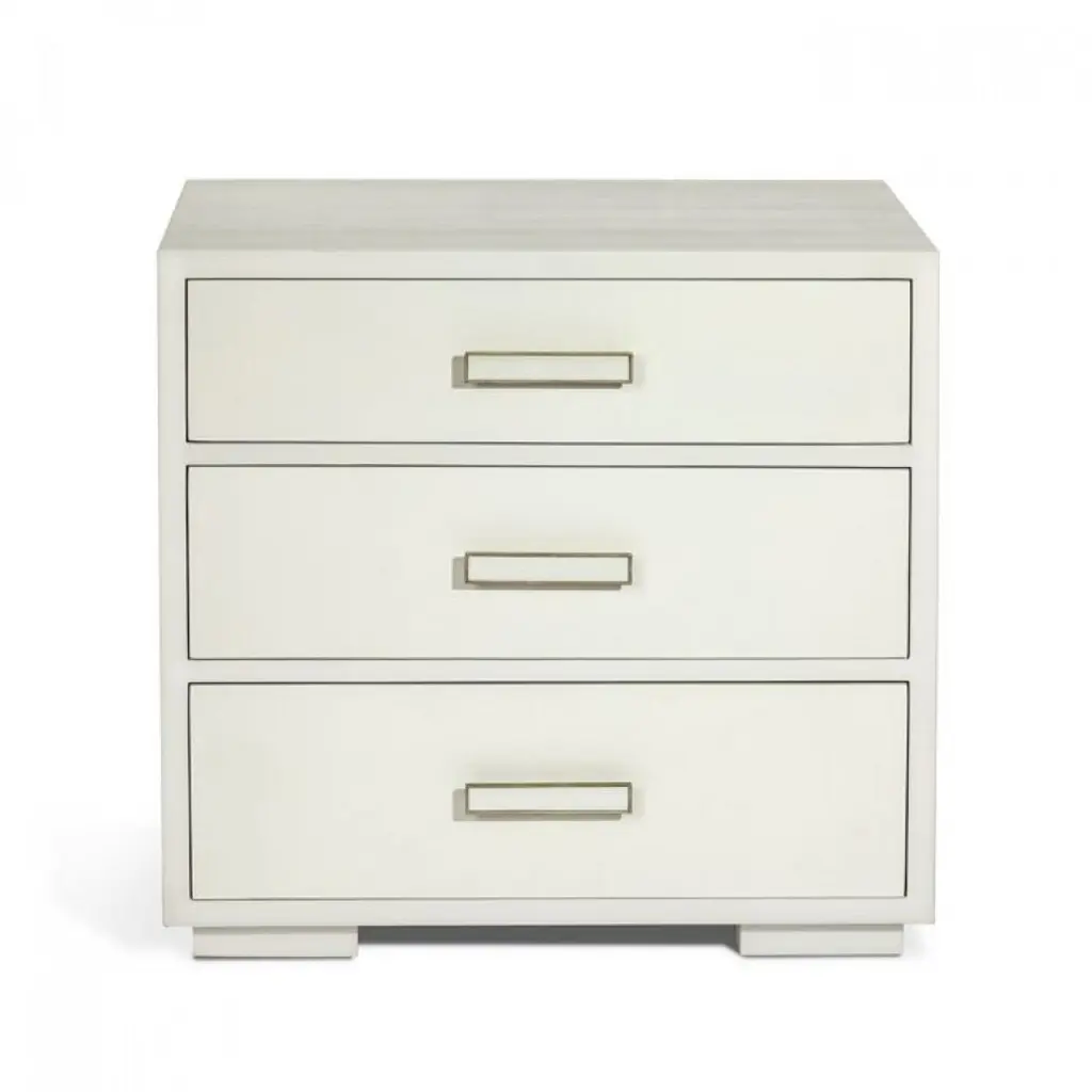 Clean lines and sleek hardware are the perfect complement to the fabulous snow white resin cast snakeskin texture of the Portia Bedside Chest.