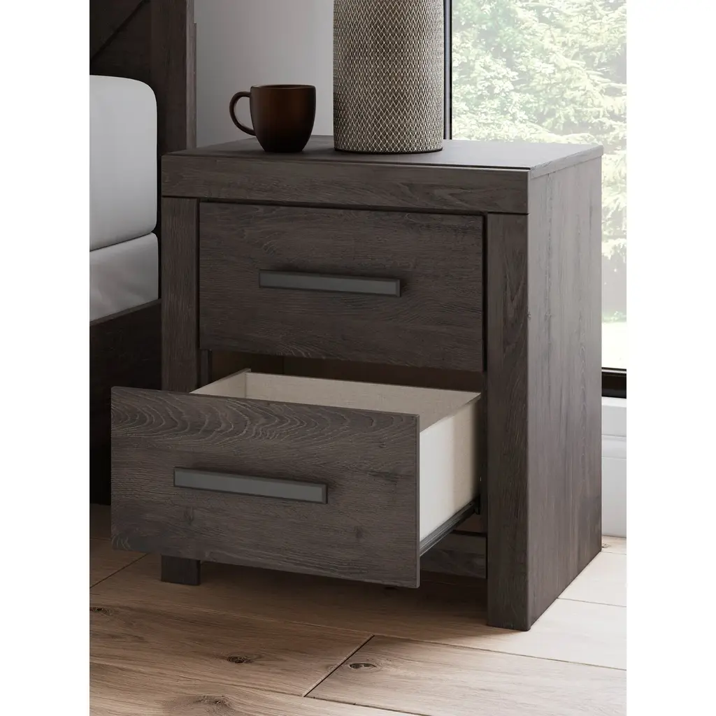 Designed with everyday style in mind, this nightstand is a simply chic approach to modern living. A dark charcoal finish blends black and brown undertones, creating a versatile look that effortlessly pairs with your existing pieces. And for must-have function, two smooth-gliding drawers store bedside essentials in charming fashion.