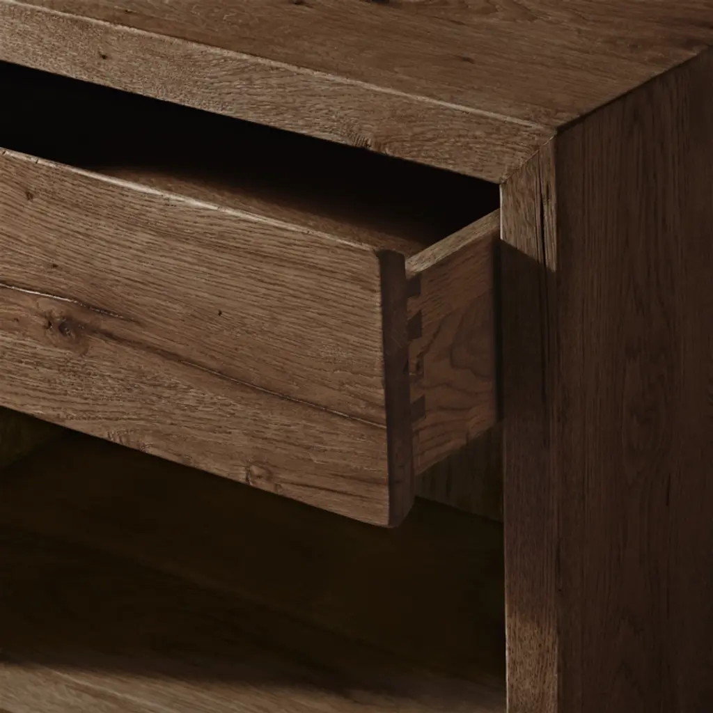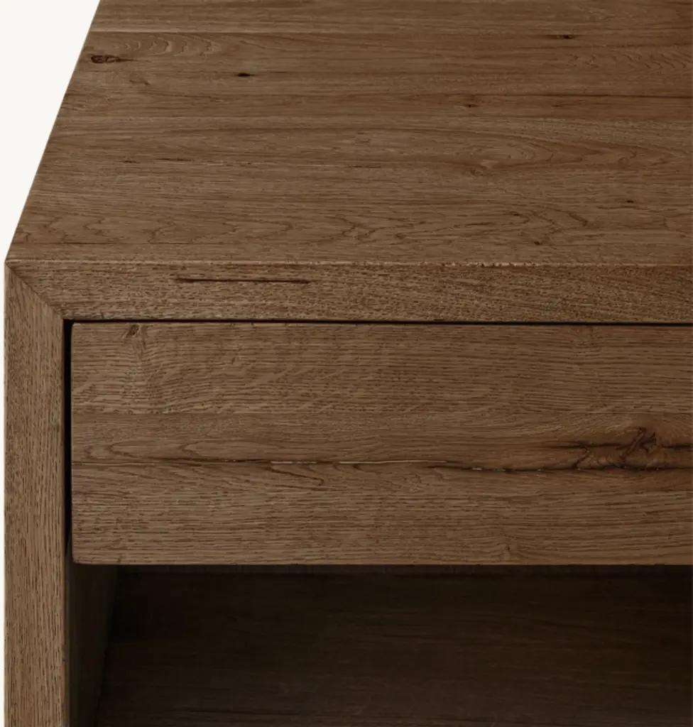 A slimmed-down take on our iconic Reclaimed Oak collection, this nightstand from artisan Nils Verhoeven features a minimalist form set within a slender frame. Hand crafted from reclaimed oak timbers from decades-old buildings in Europe, each unadorned piece retains the natural character of the wood, bearing the occasional knot, nick or crack that makes it uniquely one of a kind. SHOP THE ENTIRE COLLECTION