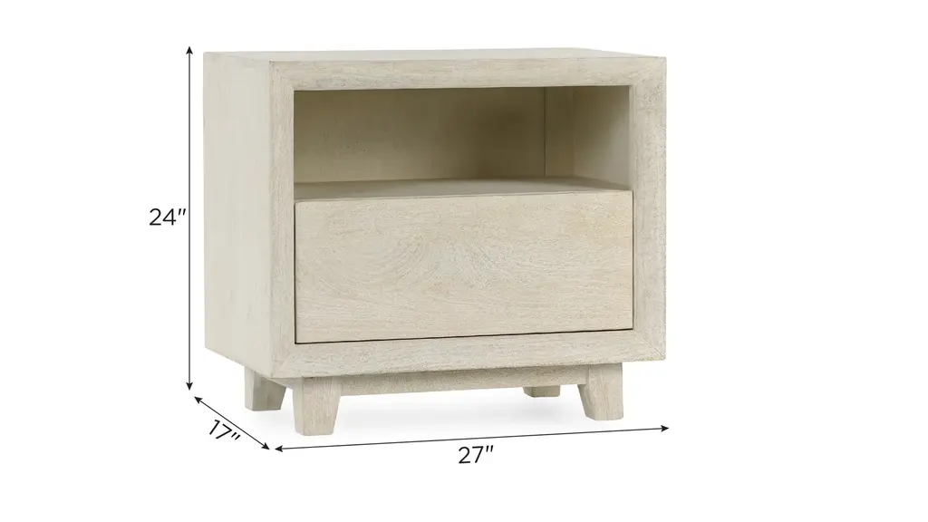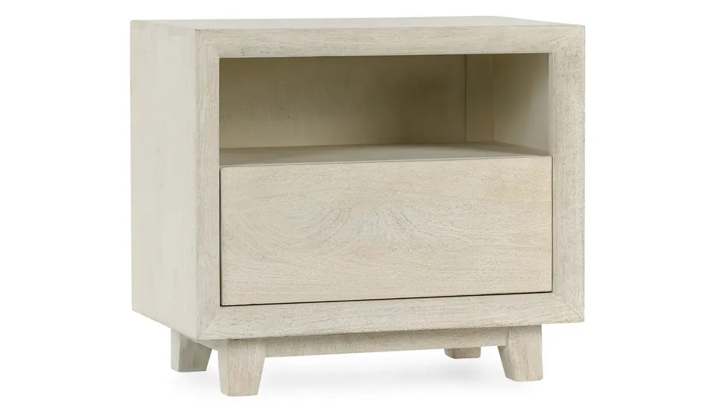 Reece Nightstand blends classic lines with versatile storage making it an ideal option for any style bedroom. A light finish preserves the natural appeal of mango wood while easily enhancing any color palette.