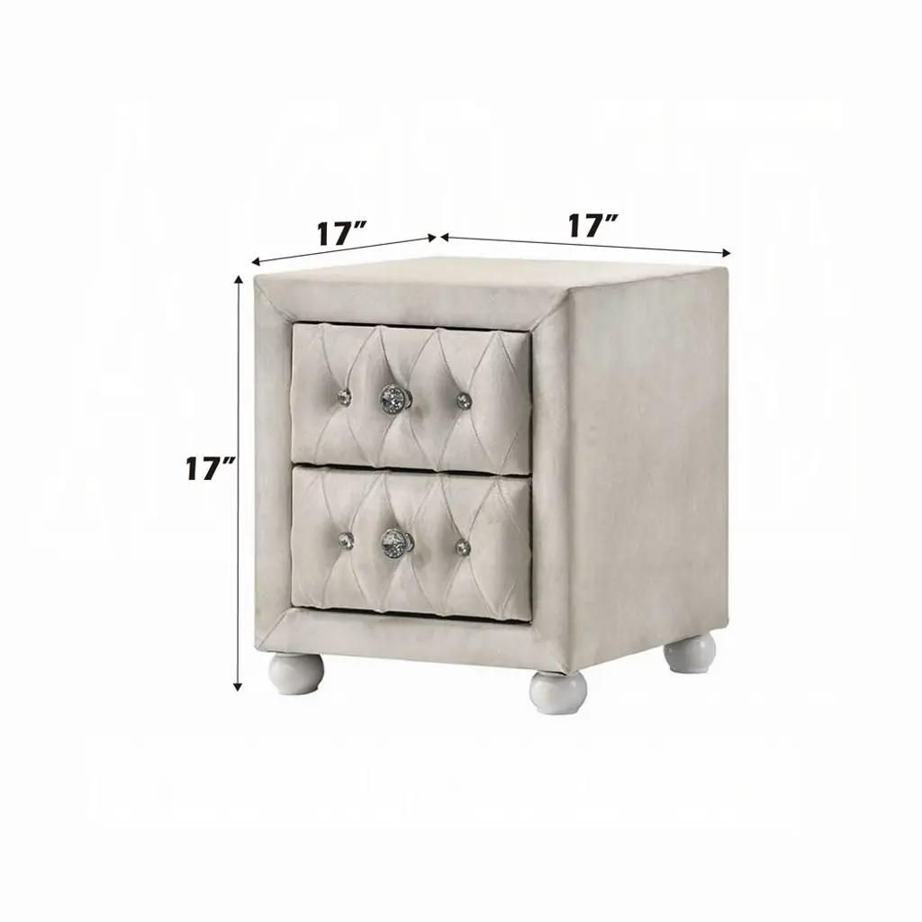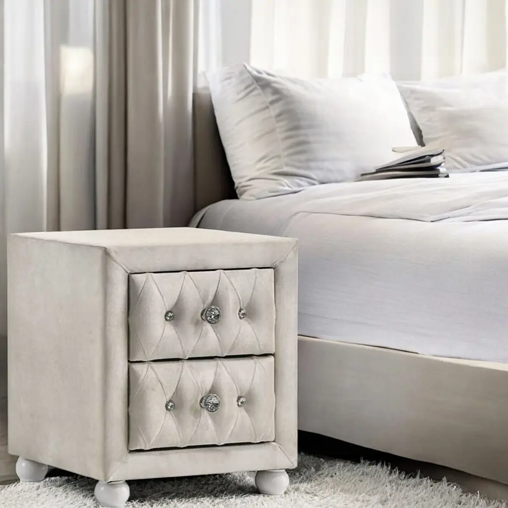 Enter the sophisticated realm of the Reggie bedroom collection. Wrapped in elegant gray fabric, this set features a strikingly tufted headboard and matching drawer fronts, exuding timeless luxury. The soft, padded surfaces offer both comfort and style, creating a serene atmosphere for rest and relaxation. With its blend of classic and contemporary elements, the Reggie collection transforms your bedroom into a refined retreat.