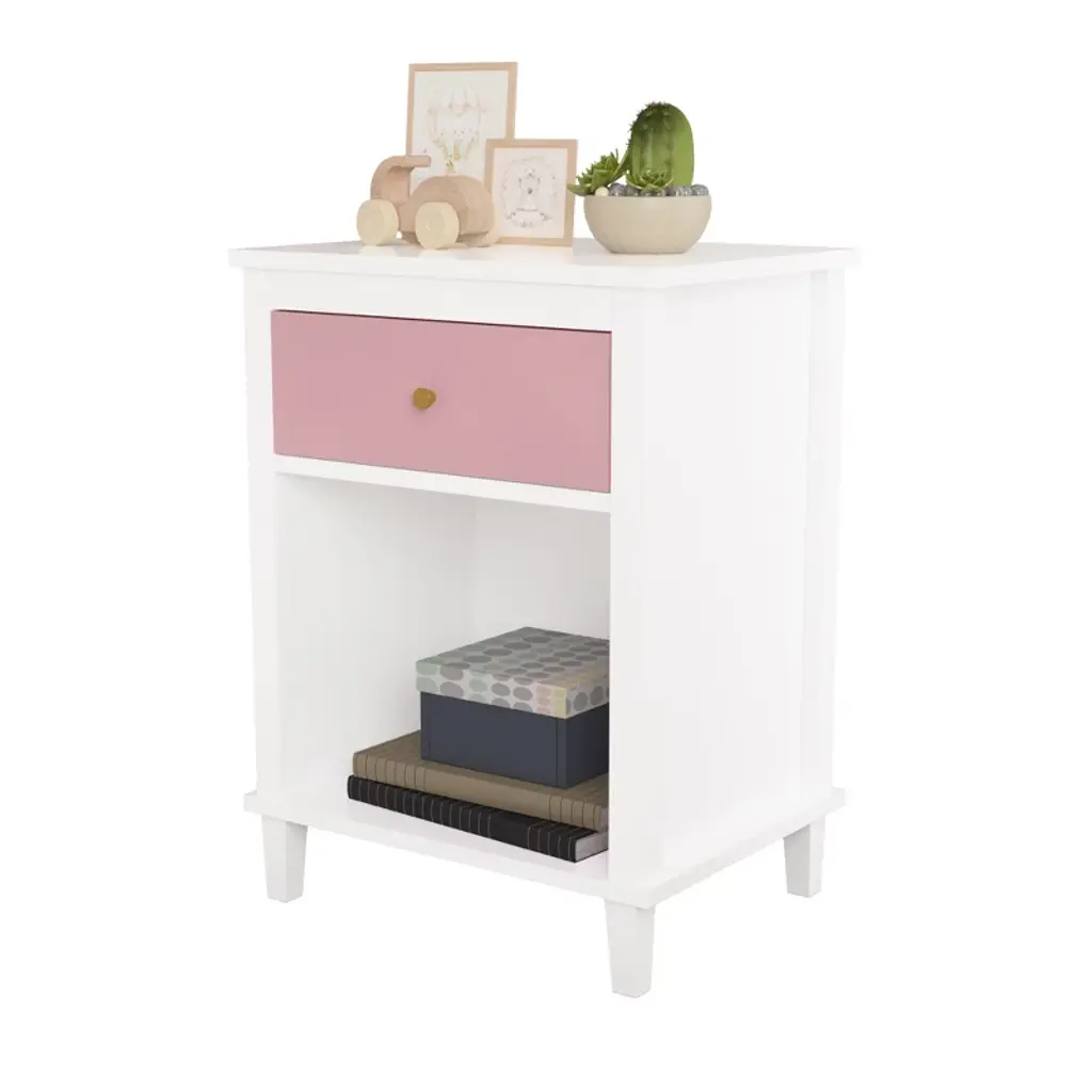 Available in a variety of beautiful colors, this nightstand adds a fun style to your children's bedroom.With 1 drawer and 1 open storage shelf, you'll find quite a bit of storage space hidden inside this cute nightstand. Carefully crafted with MDF and featuring a safe finish, this bedside table is sturdy and odorless, so you can rest assured that you can place it next to your bed, enjoy your reading, and then gently drift off to sweet dreams. This two-tier nightstand can also be used as an end table, suitable for a side table next to the sofa in your living room, hallway or office. It brings a clean and fresh look to all charming rooms. Resenkos Wooden Nightstand for Kids Bedroom with 1 Drawers & Open Cubby, Pink&White