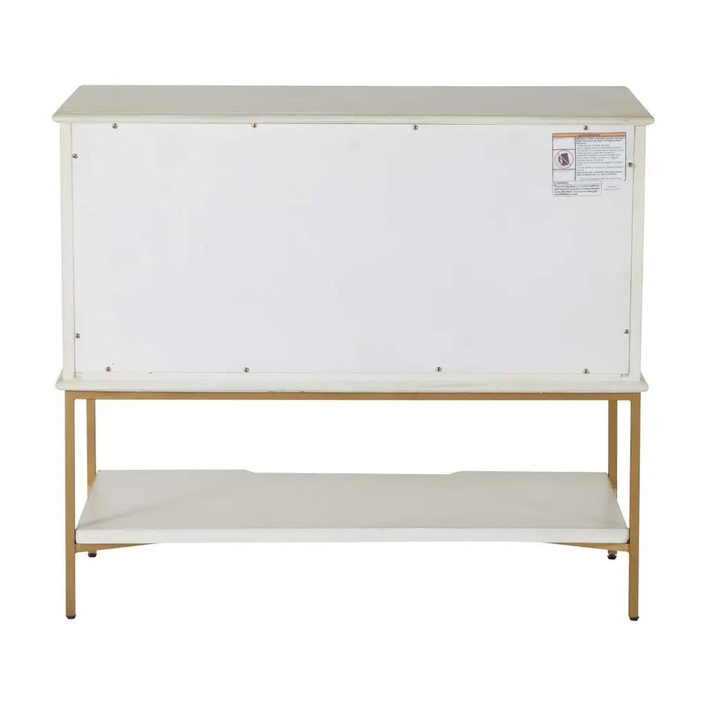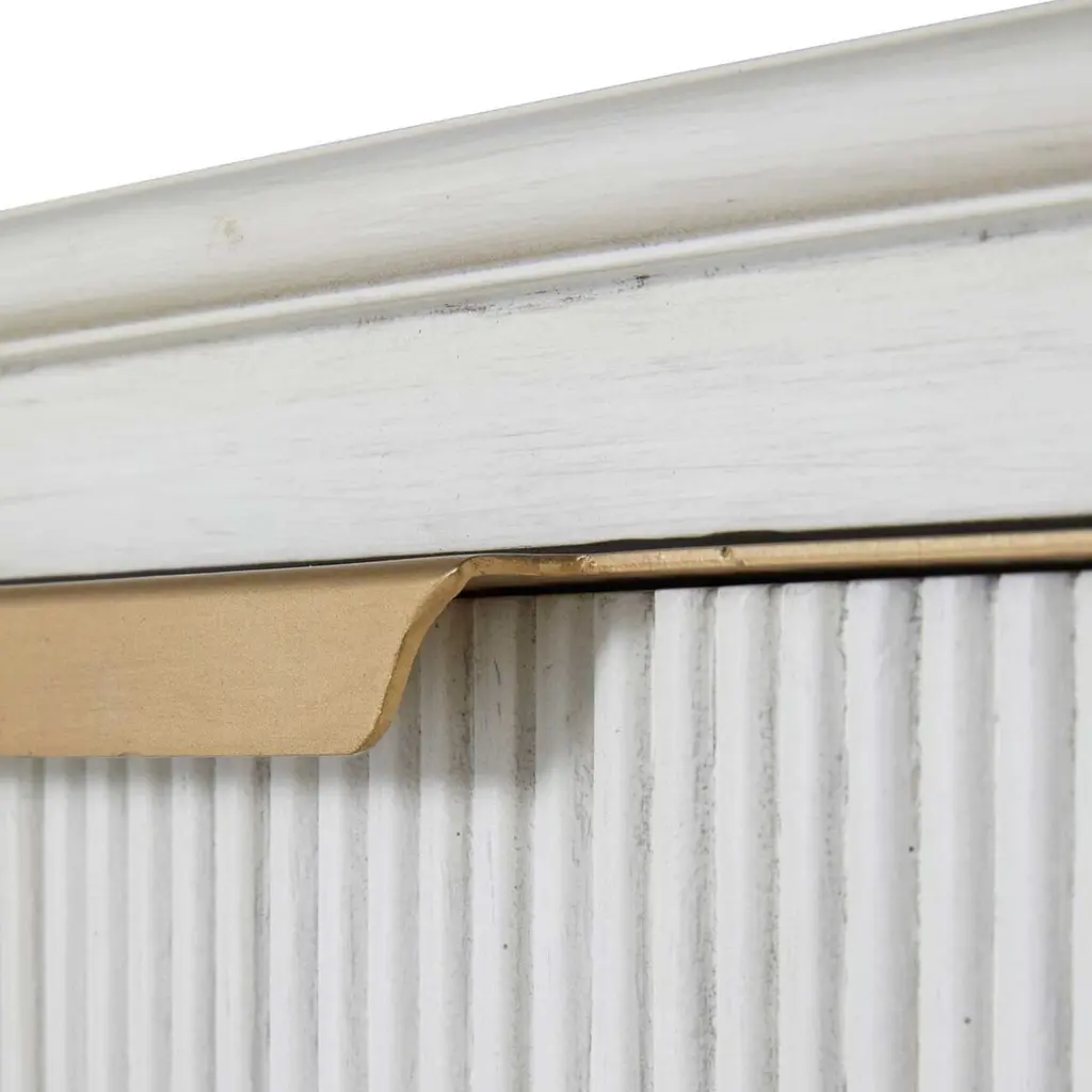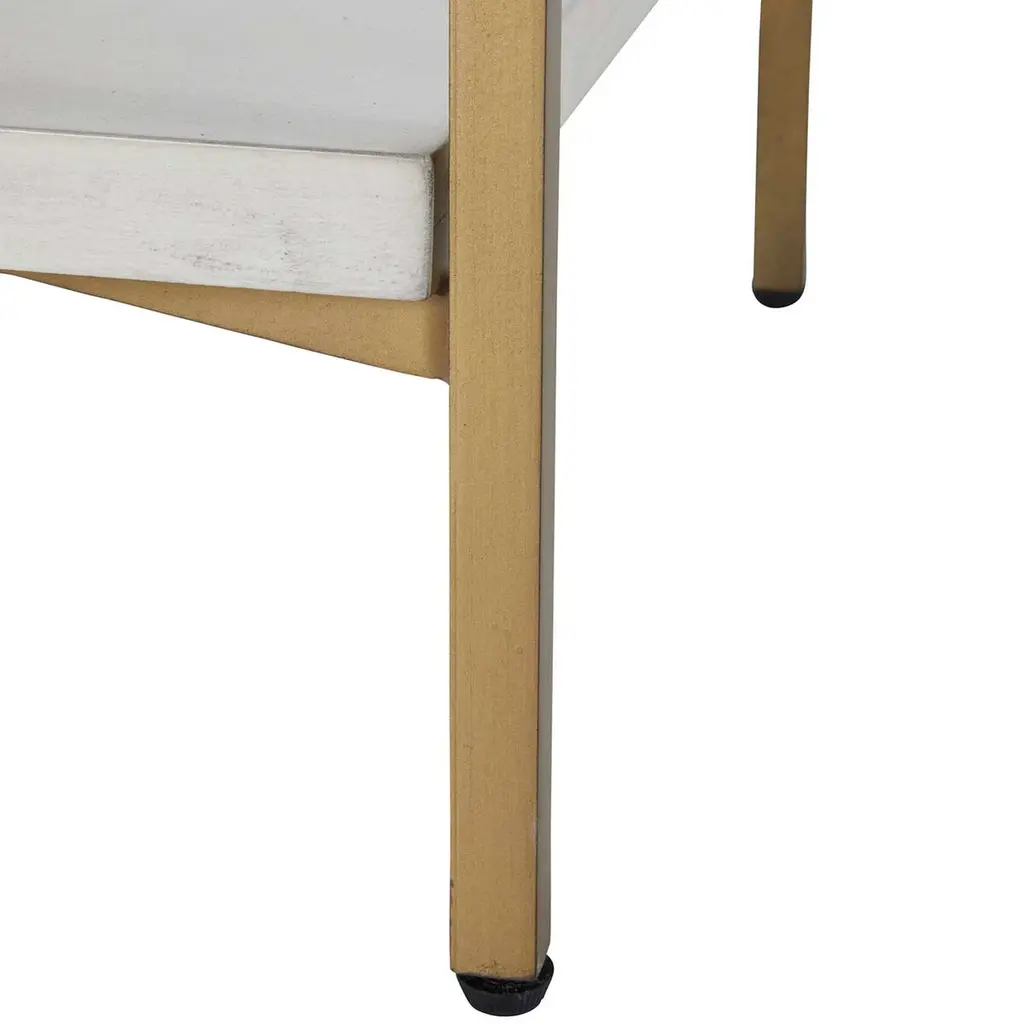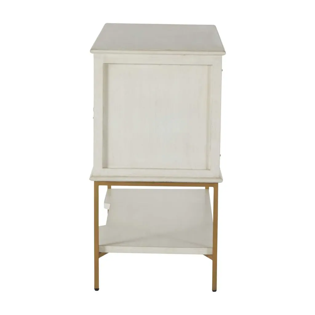 This transitional nightstand gets a contemporary touch with clean, modular styling. A simple gold metal frame supports the Riggs Nightstand which features two ribbed-front drawers plus a bonus shelf for extra storage or display. This product uses natural or handmade materials. Differences in color and pattern should be expected.