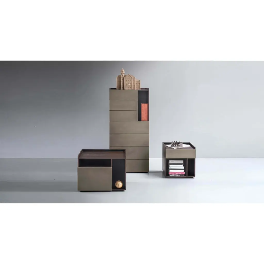 The Right Compartment Oak Nightstand by Lema Tip is designed by Daniel Debiasi and Federico Sandri, Tip is a collection designed for bedroom storage that features a chest of drawers, a tallboy, and a side table, with the latter available in two different versions. A contemporary, simple collection that experiments with open and closed spaces, Tip combines the heat-treated oak of the structure with drawer fronts available in matte or glossy lacquer, Canaletto walnut, or the sophisticated Argilla, which is silky to the touch and pleasant to look at.